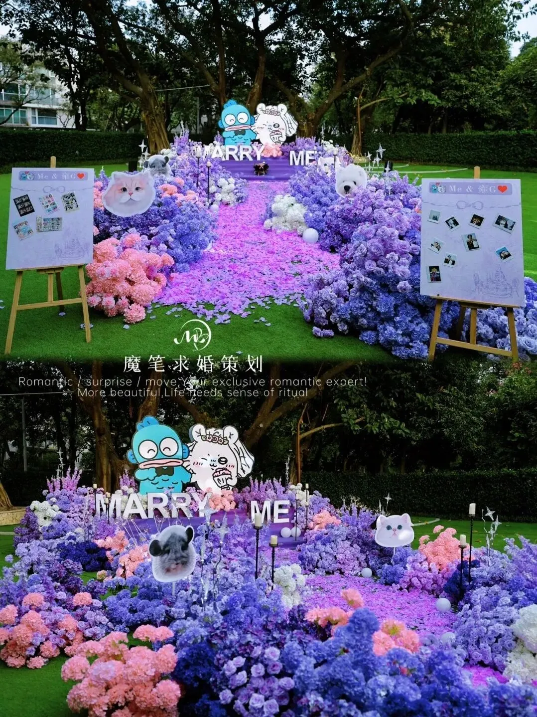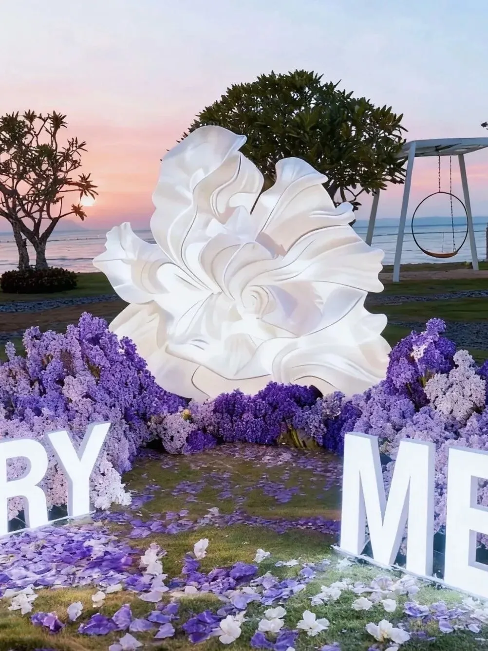 徒步至山谷深处,在溪流边的百年古树下,悬挂透明的许愿瓶,每个瓶内装着一封手写情书。终点处,我们用野花铺成心形求婚区,在自然的怀抱中说出那句“嫁给我”。