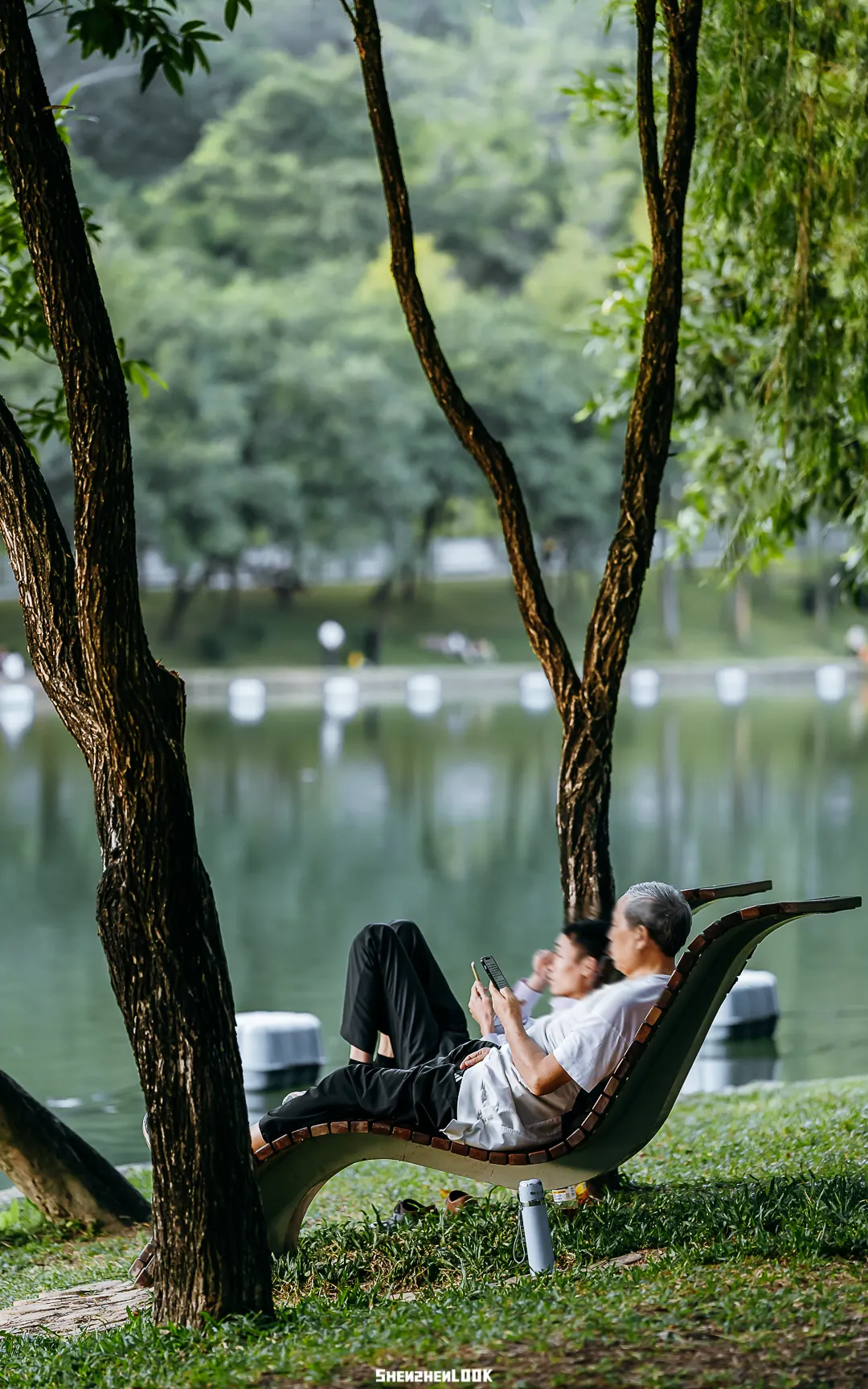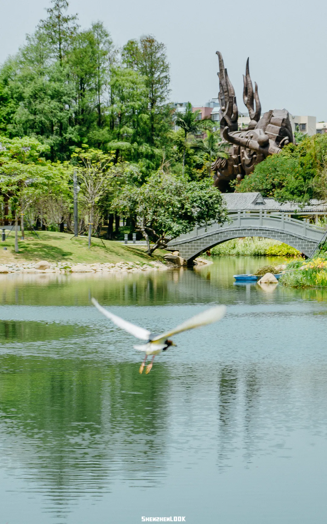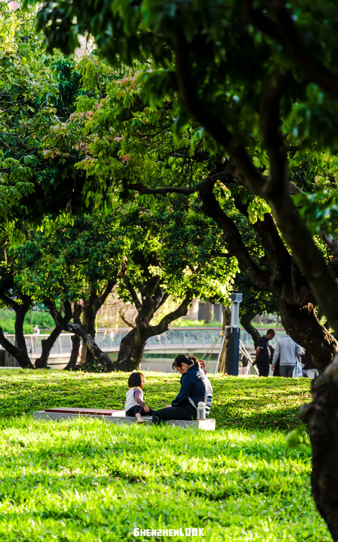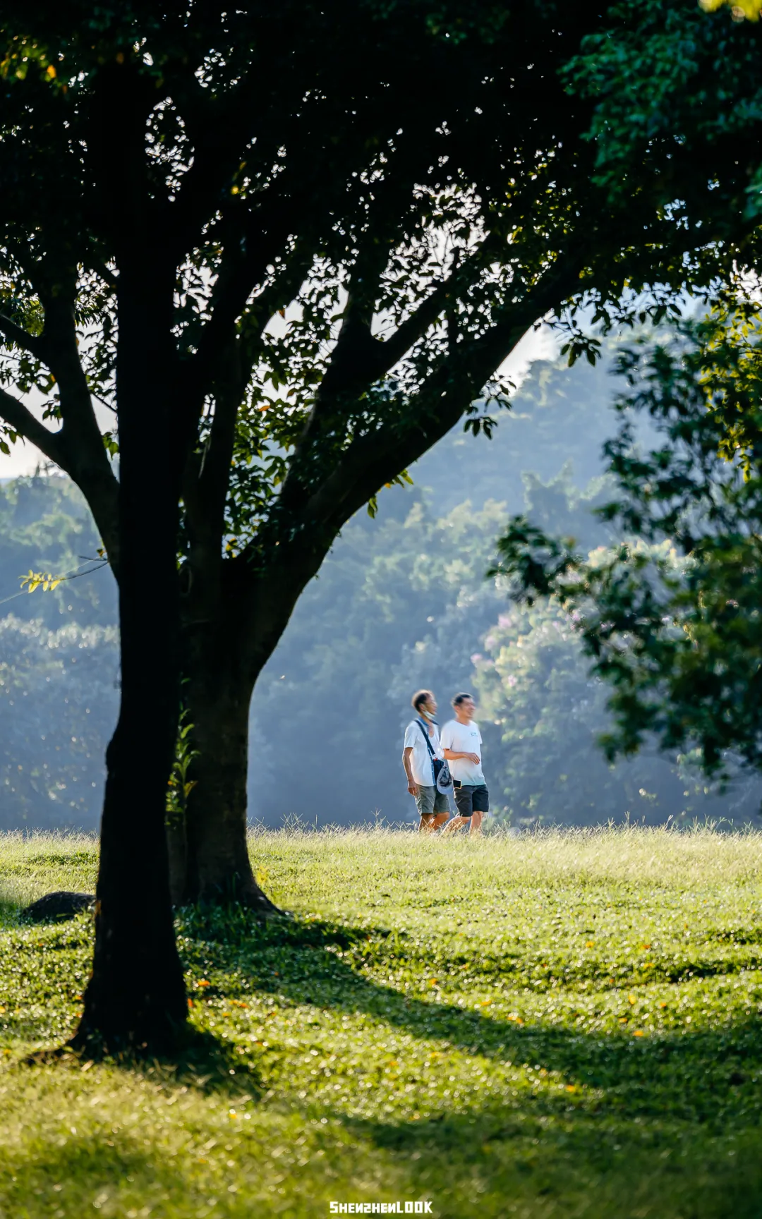 深圳的公园永远不缺湖,湖水像软软的丝绸,被镀上一层温柔的光。