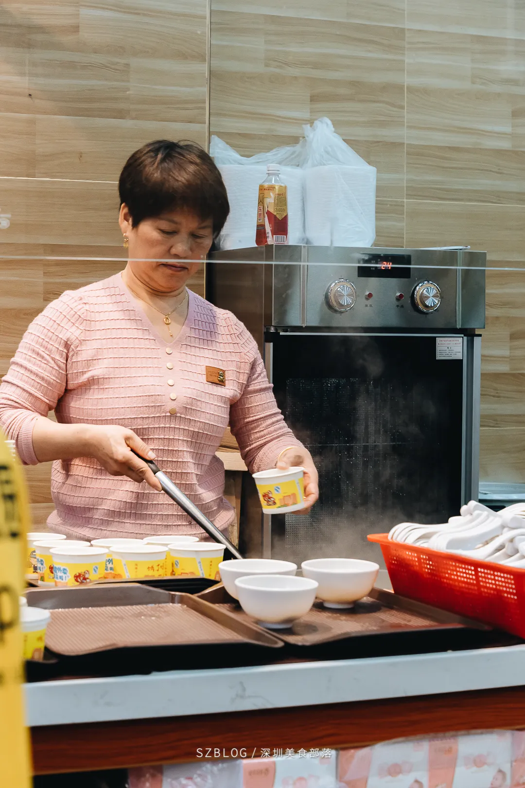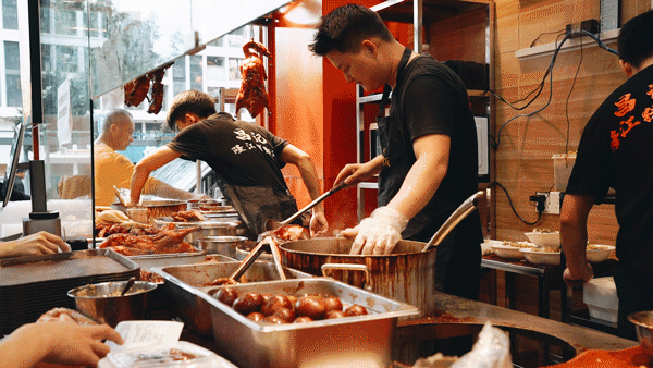 高峰期订单虽多,但店员分工明确:老板和几位店员负责切料出餐,一人负责点单,一人负责盛汤打饭,还有一人专门打包外卖,上菜速度很快。