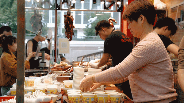 生意一直很旺,是周边当之无愧的排队王。拍摄那天,外面飘着雨,来吃的人依然人从众。平日里,门店从11点半排到下午3点半也是常有的事。