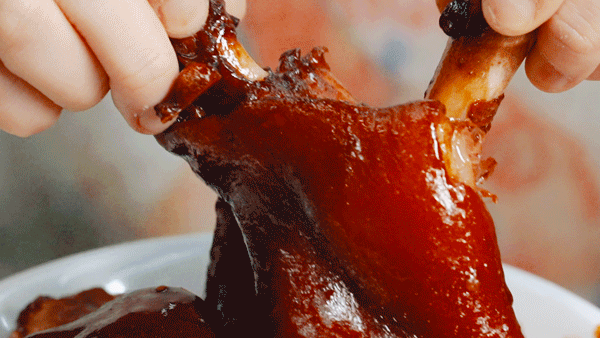 老板跟我们介绍,四点金比普通猪脚的成本更高一点、个头也更大,一个大的四点金可达450克,其中骨头的重量就占200克。