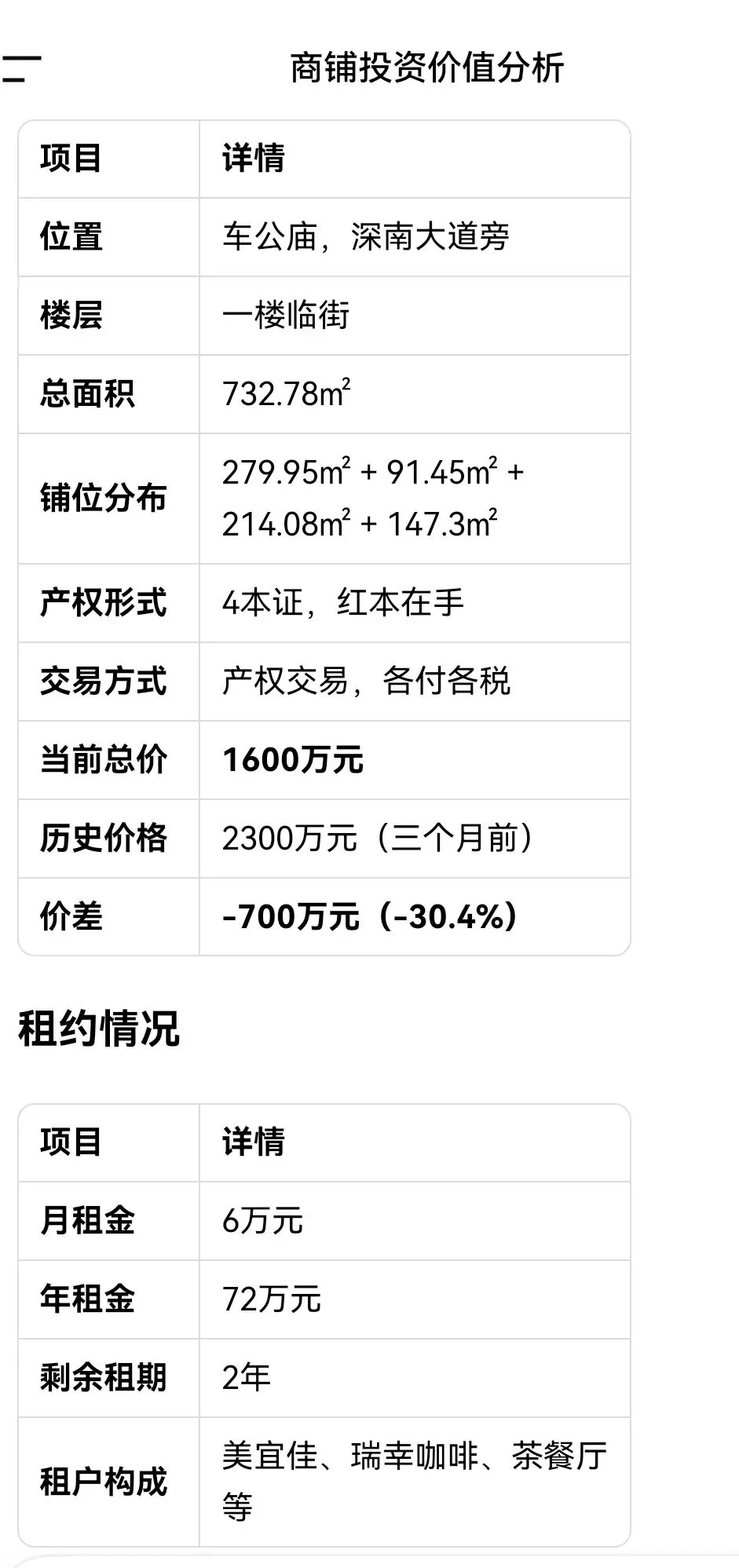 在深圳这样一个高度市场化的城市,车公庙这片商铺的价值逻辑并不复杂:核心地段、稳定租约、明确的区域升级预期。而700万元的价格回调,则为入场提供了一个难得的安全垫。