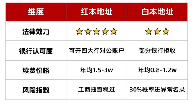 红本地址:2500-4500 元 / 年,前海红本6000 元起,适配一般纳税人、外贸企业。