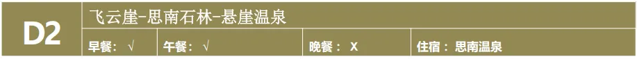 乘车2小时车程前往【思南石林】是贵州省最大的天然石林,同时也是地球上同纬度地区迄今发现的发育最好、生态保持最佳、保存最完整、出露面积最大的极具科普性和观赏性的连片喀斯特石林,石林在空间上连片分布,类型众多,包含了石芽发育从幼年到青年到老年的各种形态,有针状石林、剑状石林、塔状石林、柱状石林、城堡状石林。林区形状多变,景色秀丽,能从小中见大、大中见巧、巧中见奇、奇中见幽。随后乘车前往打卡【思南悬崖温泉】(含温泉门票)游客在这里可自由享受自然温泉,边赏美景边浸泡温泉的乐趣(需自备泳衣)。