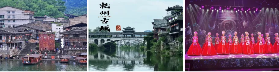 鸡鸣三省边城茶峒、思南温泉、乾州古城非遗秀、万溶江游船、朱砂古镇、苗王城、皇都侗寨、隆里古城、思南石林、天柱廊桥