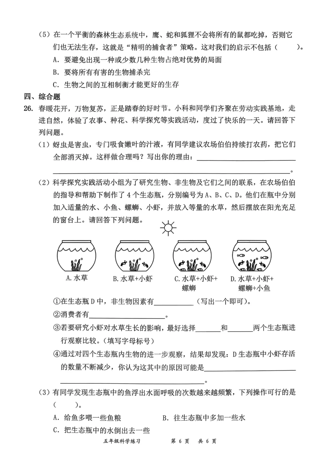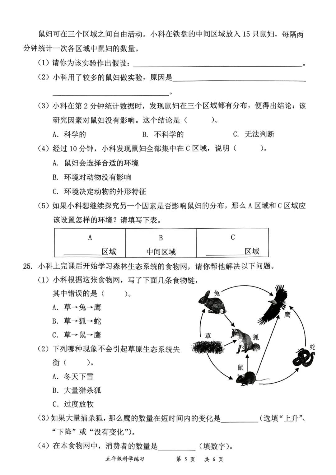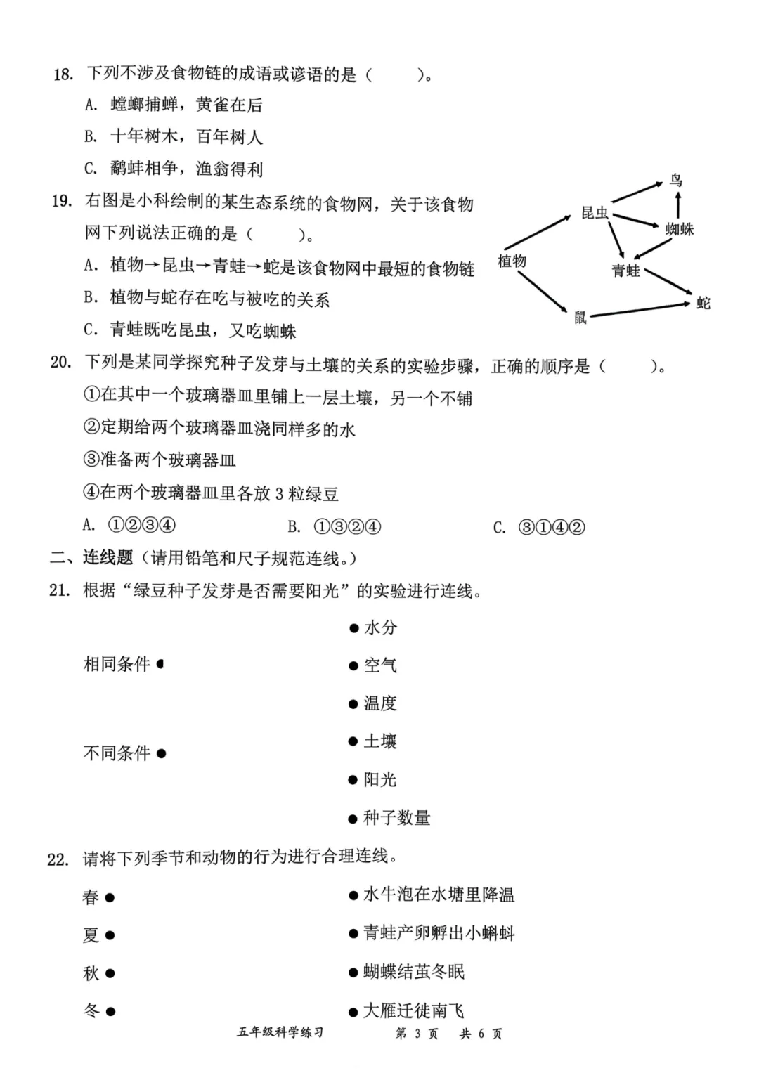 深圳市罗湖区2025-2026学年五年级科学(下册)练习一(第一单元)