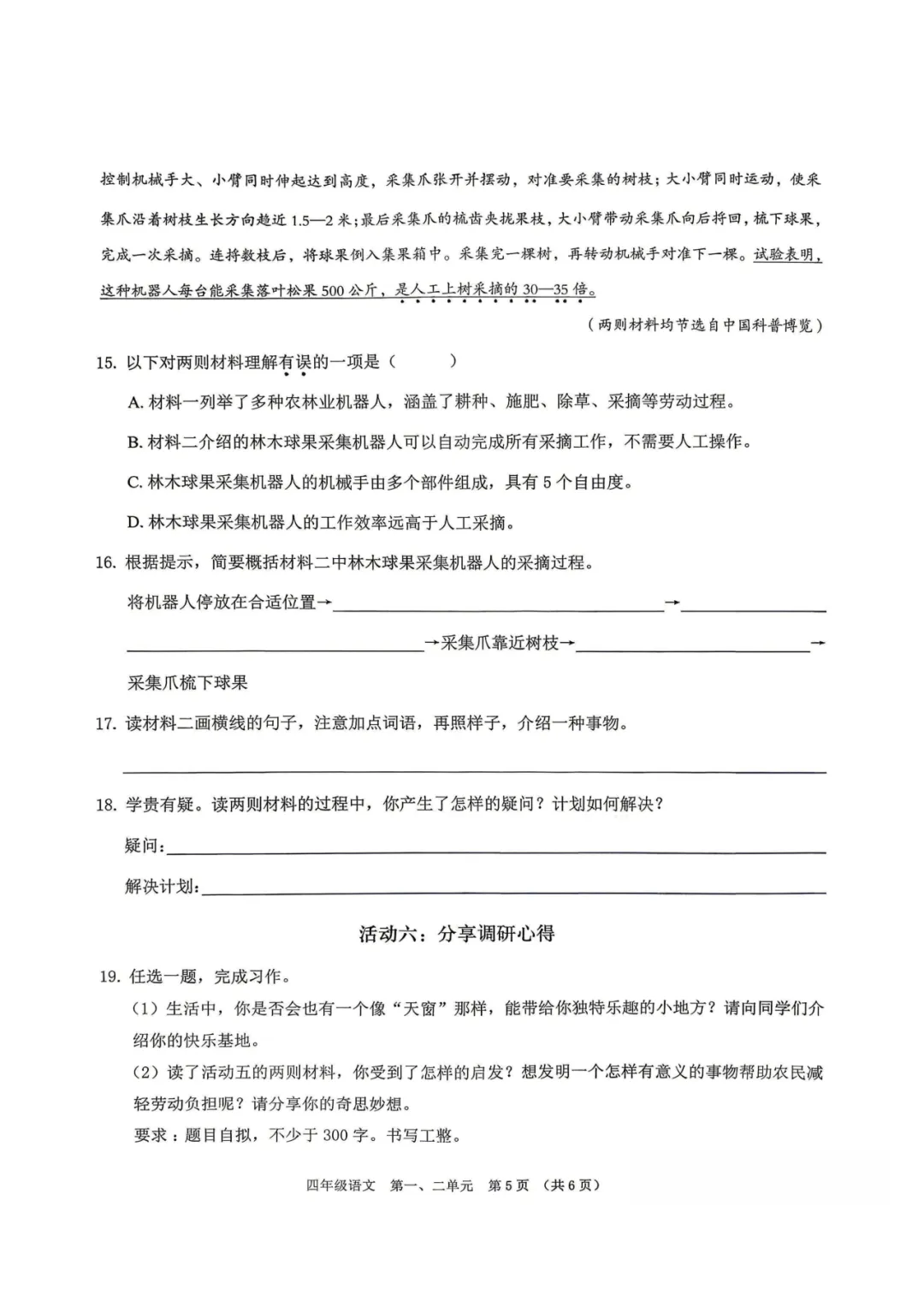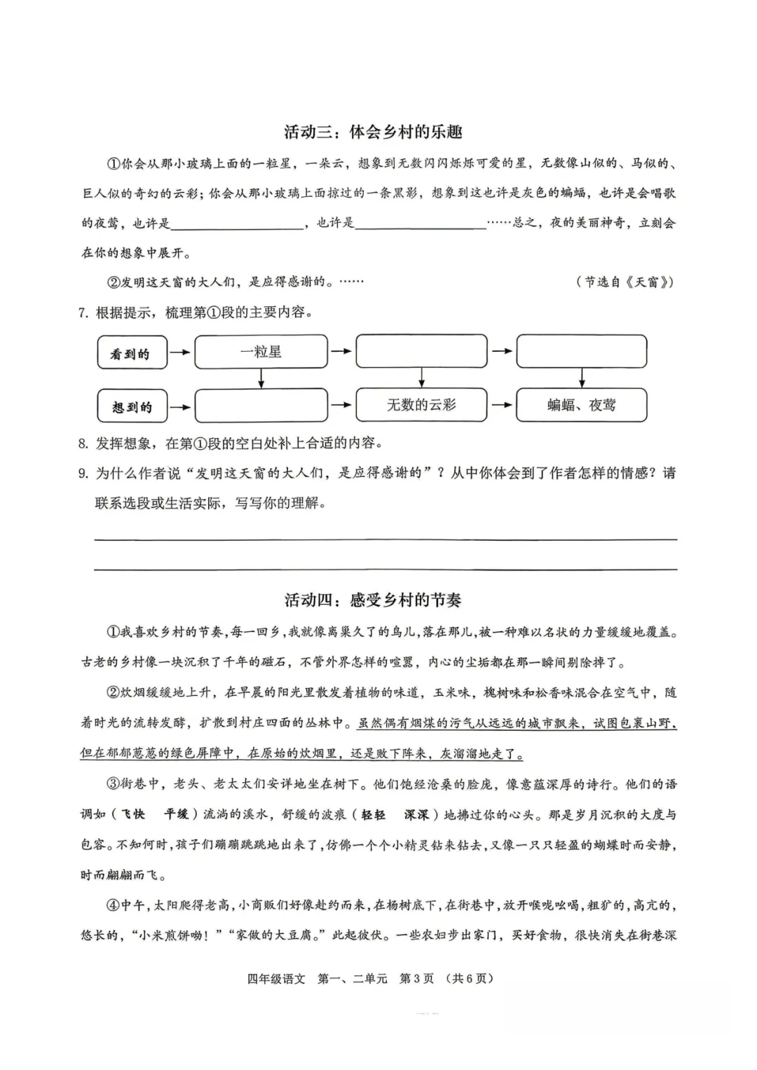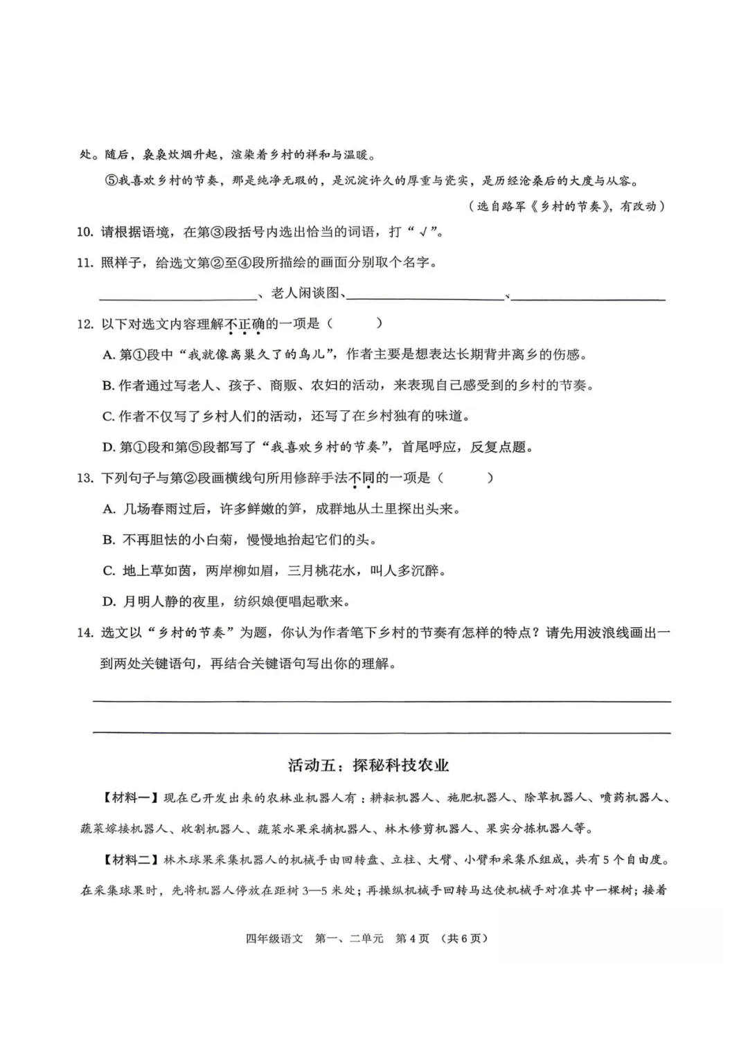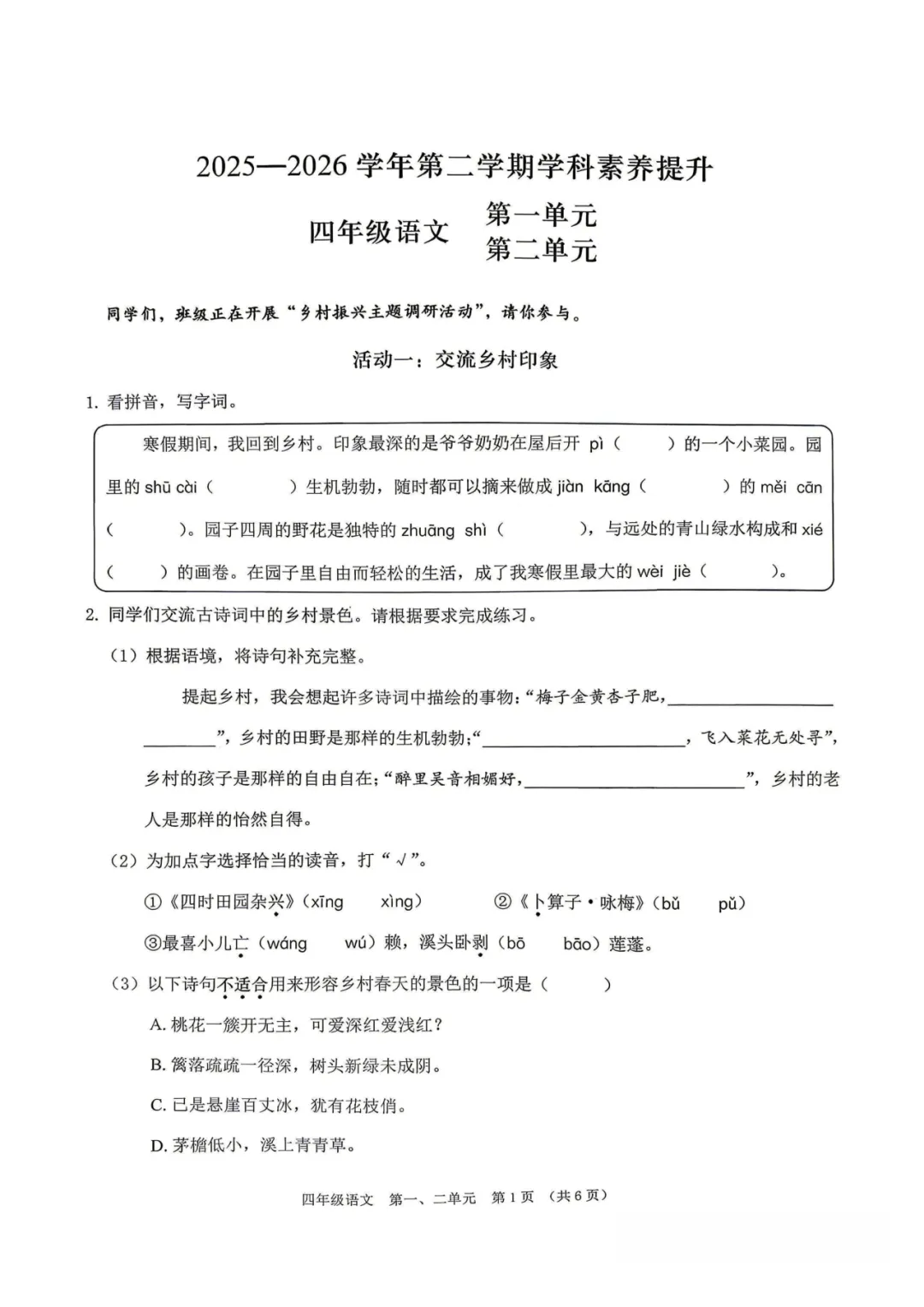 深圳市宝安区2025-2026学年四年级语文学科素养提升(第一、二单元)