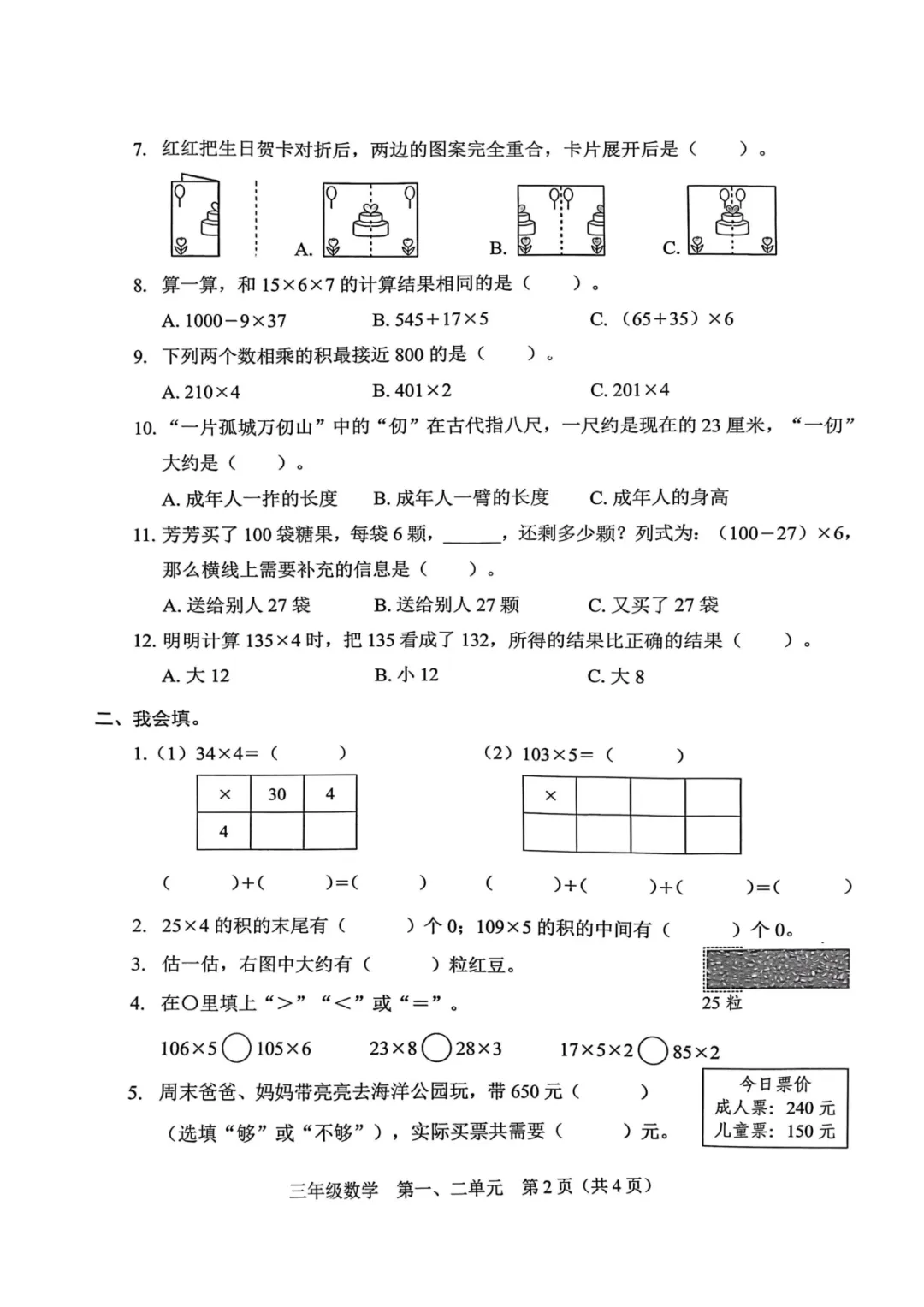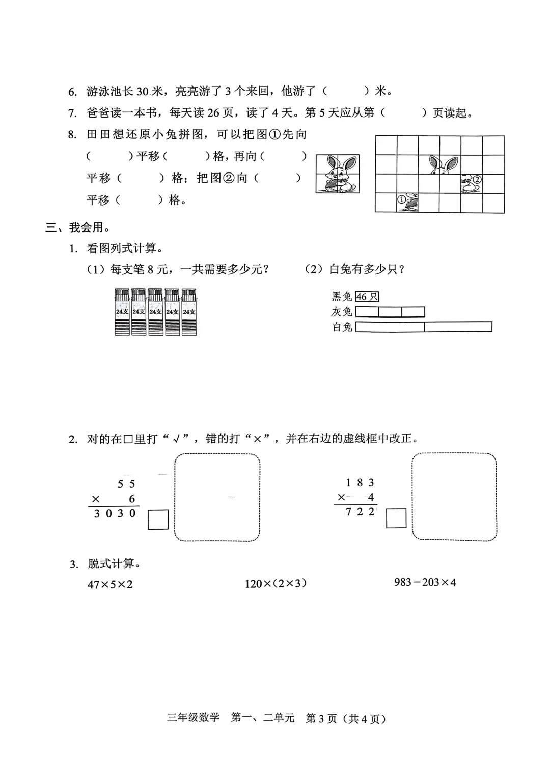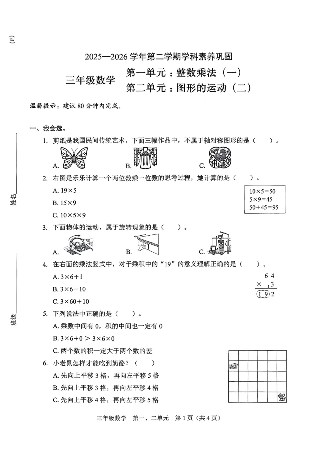 深圳市福田区2025-2026学年三年级下学期学科素养巩固数学1-2单元