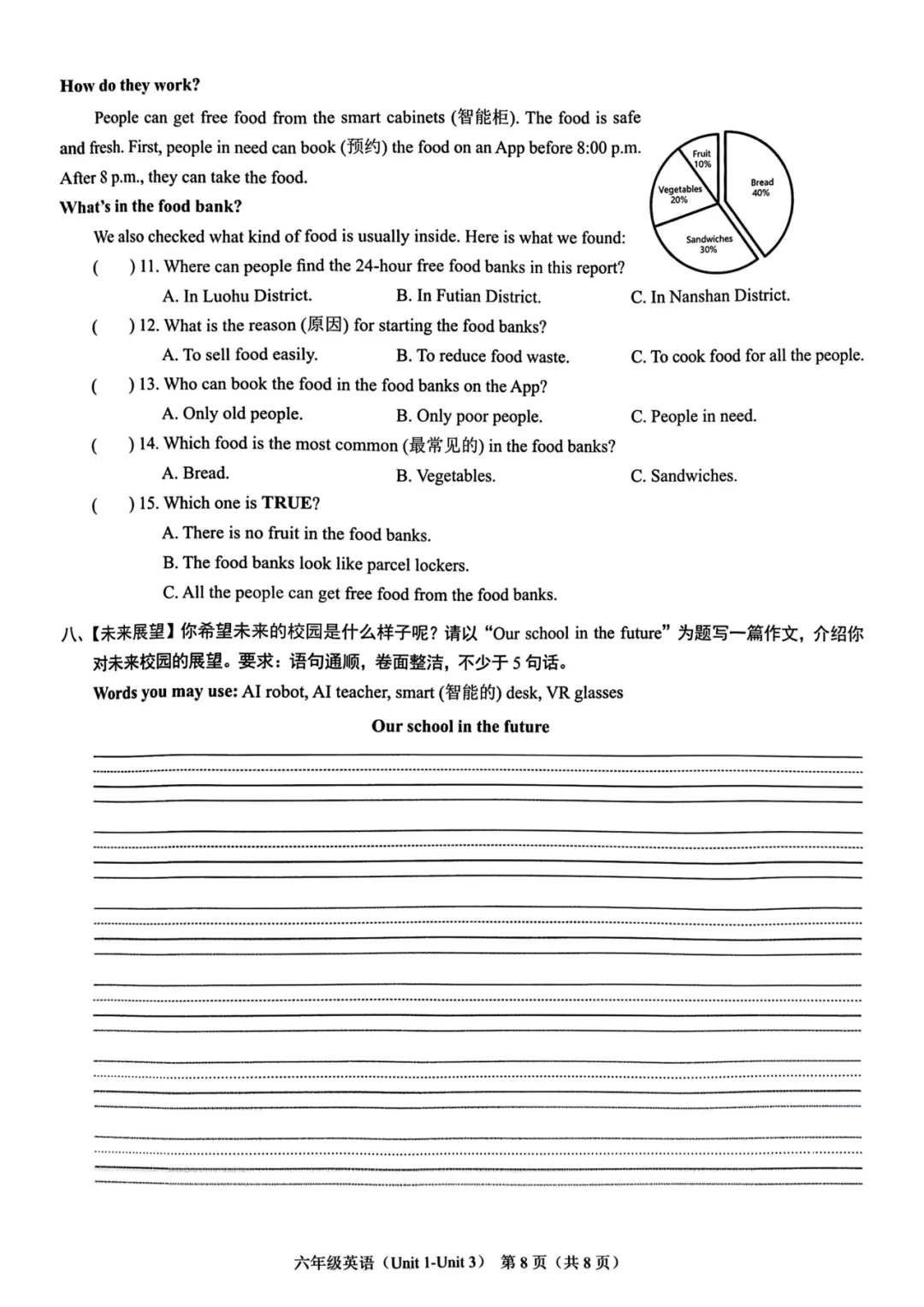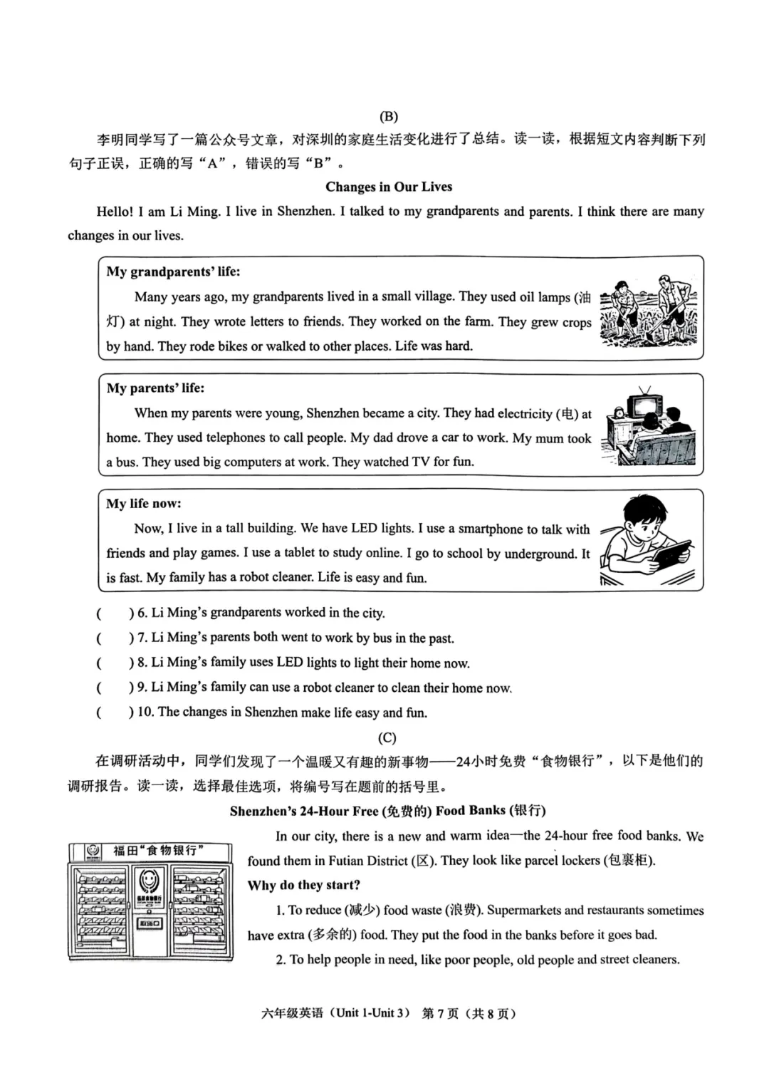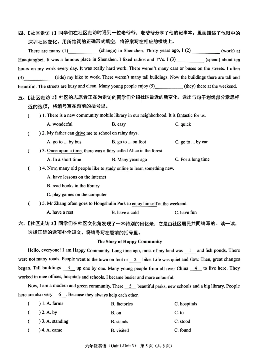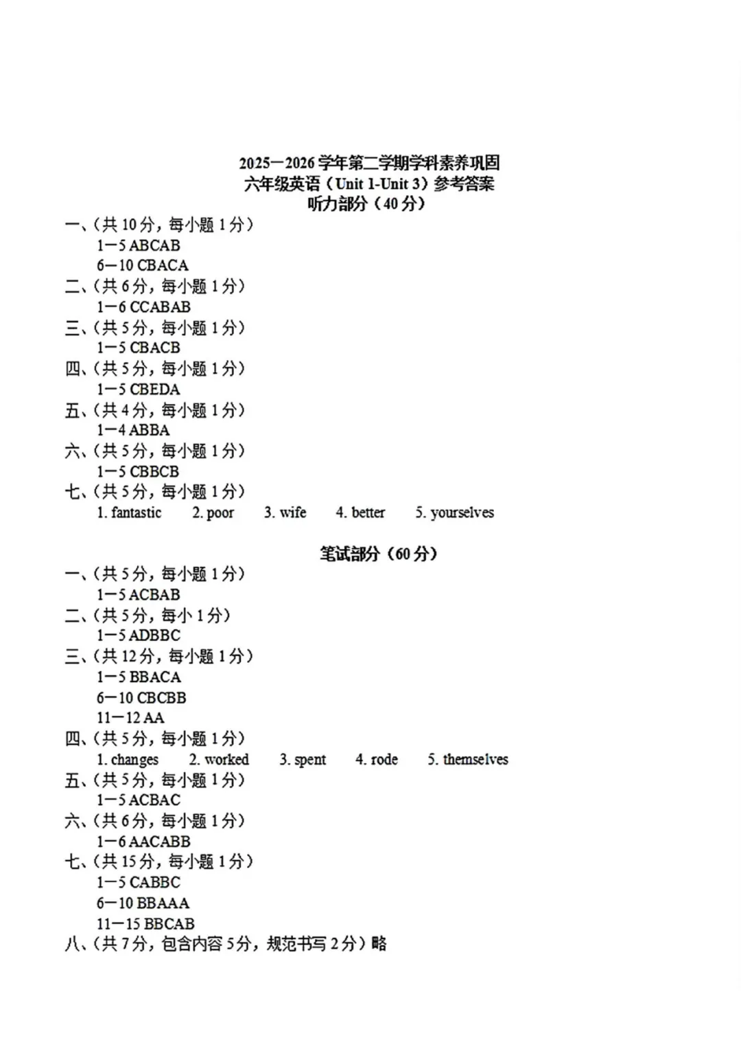 深圳市龙岗区2025-2026学年六年级下学期学科素养巩固英语(Unit1-Unit3)