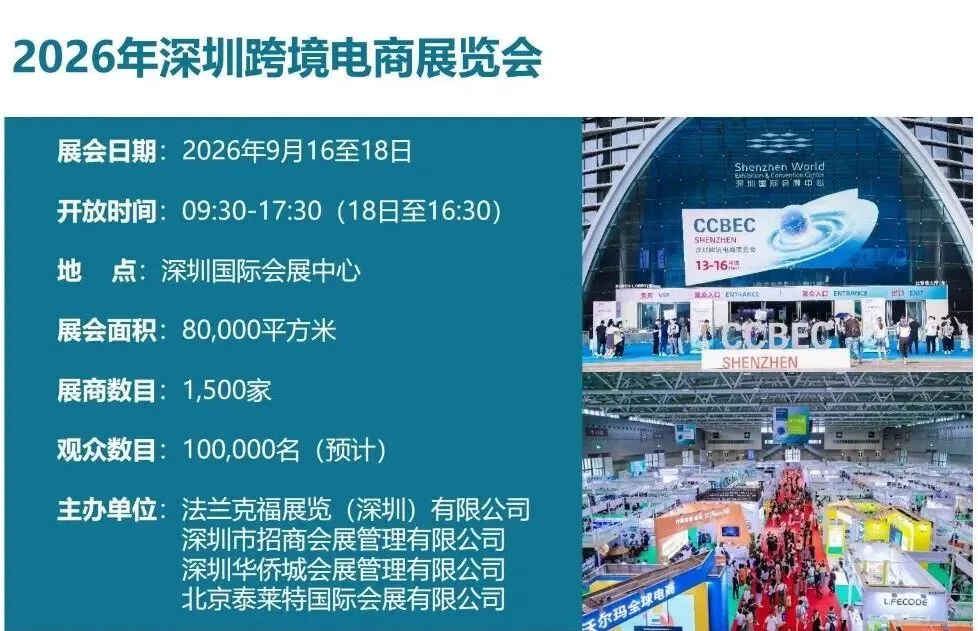 2026年CCBEC深圳跨境电商展 9月16-18日将在深圳国际会展中心(宝安新馆)隆重举行。作为华南地区最具影响力的跨境电商行业盛会,本届展会预计展览面积达8万平方米,将吸引超过1,500家优质展商和100,000名专业观众共襄盛举。展会以"链接全球,智造未来"为主题,全面展示跨境电商全产业链创新成果。