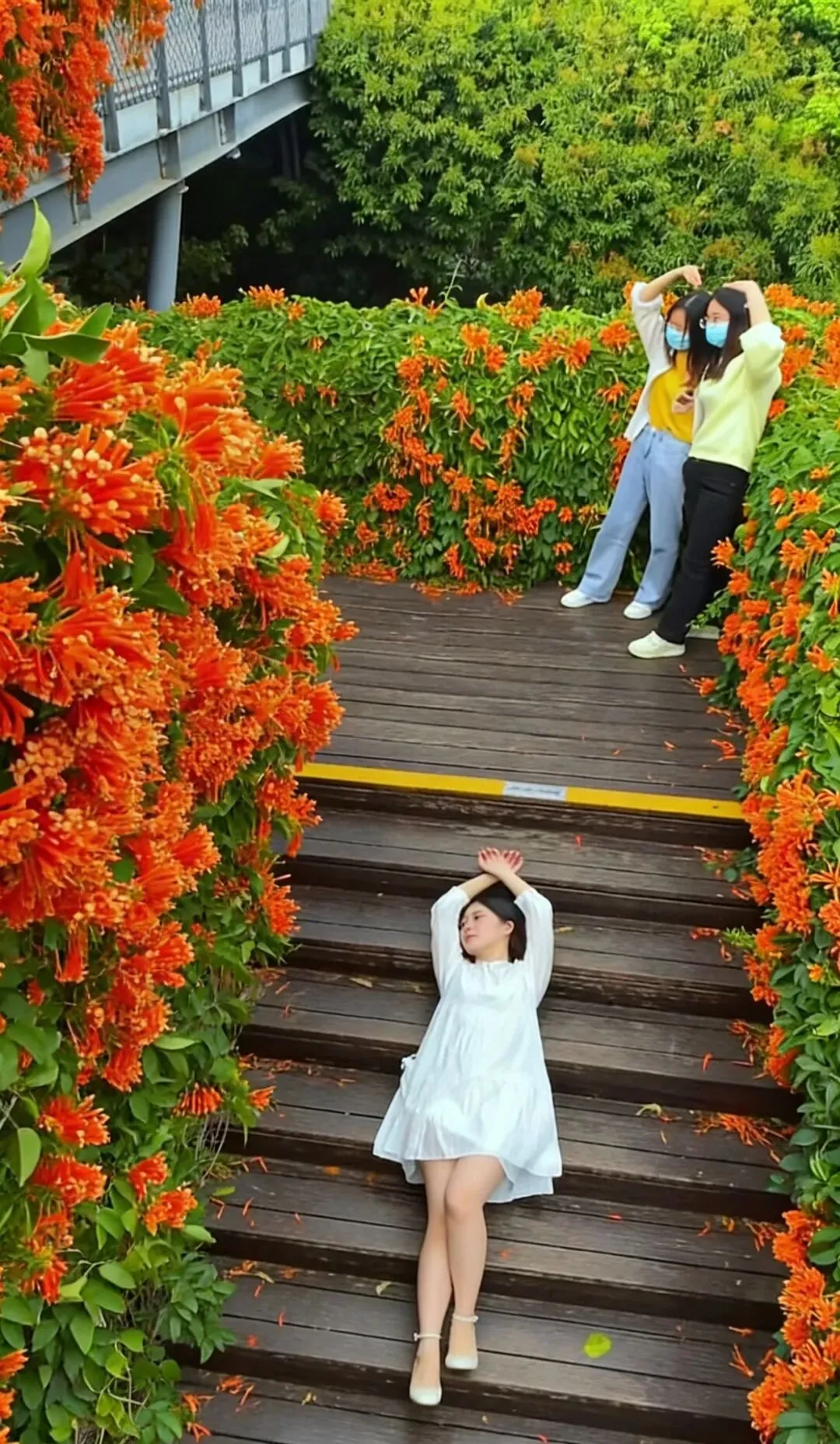 四、香蜜公园有鲜花阶梯、空中廊桥,被称为深圳莫奈花园,