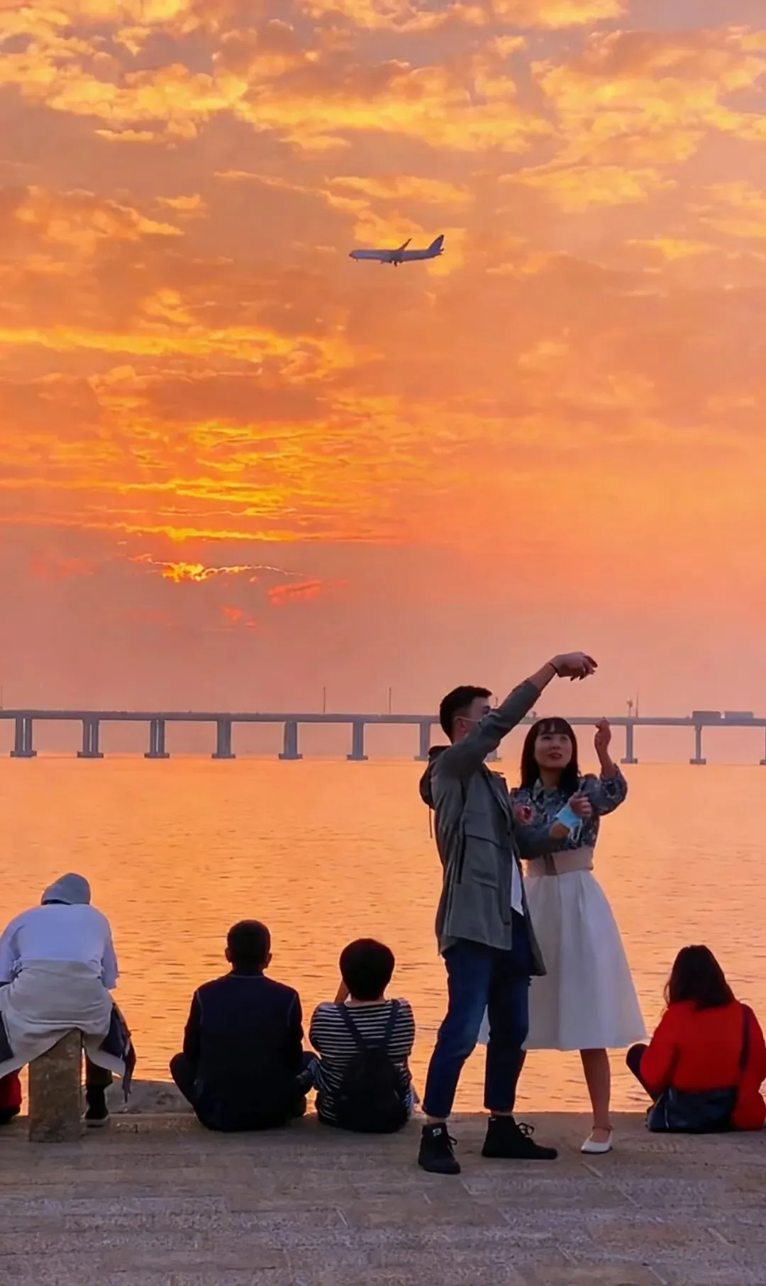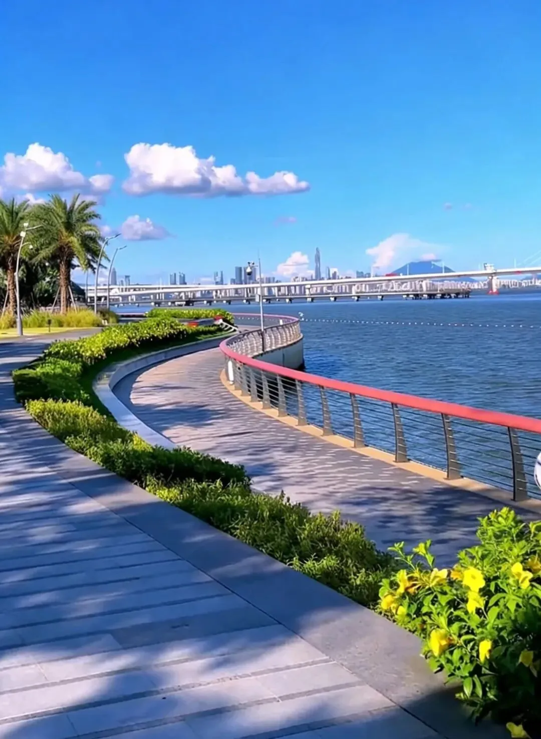 一、深圳湾公园,海滨长廊加城市天际线,日落海边栈到水手呸都市电影感大片。