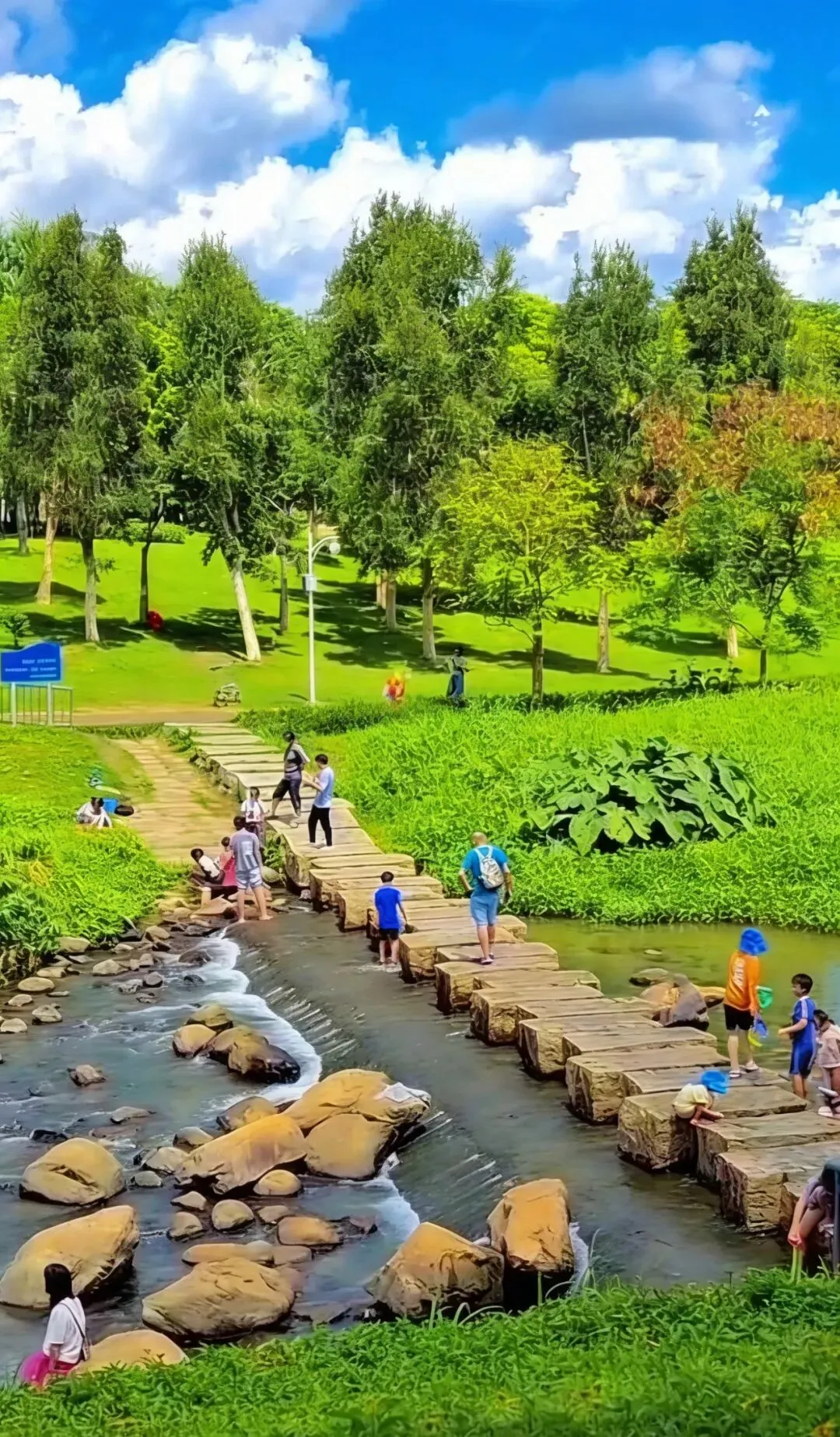 七、深圳中心公园,是市中心的绿会小溪,草地森林齐全,散步野餐都很适合。