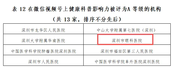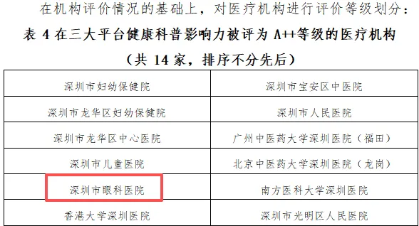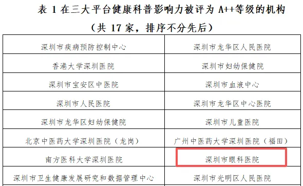 【喜讯】实力见证!深圳市眼科医院获评健康科普影响力A++等级