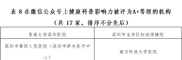 • 平台专项表现:在微信公众号的健康科普影响力评估中,获评A+等级;在微信视频号平台获评A等级。