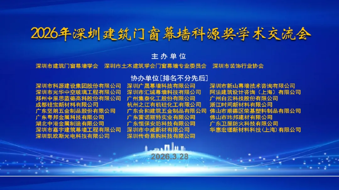 3月28日,由深圳市建筑门窗幕墙学会、深圳市土木建筑学会门窗幕墙专业委员会、深圳市装饰行业协会主办的2026年第11届深圳建筑门窗幕墙科源奖学术交流会在深圳隆重召开!