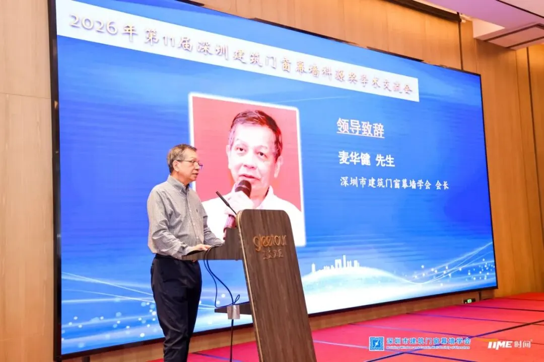 会上,深圳市建筑门窗幕墙学会会长麦华健作总结发言。他简要回顾了2026年门窗幕墙论文的总体情况,总结了论文中存在的问题,并提出了修改意见。随后,麦会长代表主办单位,向积极参与本次活动的行业同仁以及给予大力支持的各家协办单位表示衷心感谢。最后,他表达了对行业发展的期望,希望未来能在管理、设计、制造、施工及安全维保等各个环节涌现出更多高质量的论文,共同推动建筑门窗幕墙向更绿色、更智能、更高品质的方向发展。