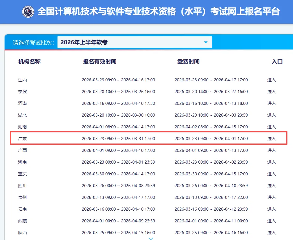 备用网址操作:也可直接打开全国计算机技术与软件专业技术资格水平考试https://bm.ruankao.org.cn/sign/welcome ,选择“广东省”点击进入,跳转至相应页面。