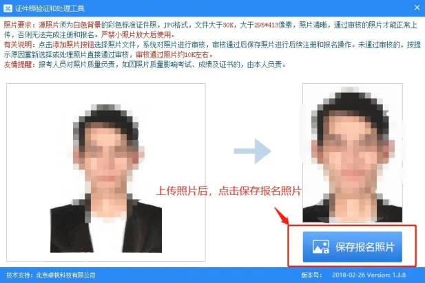 (1)操作流程:完成信息填写后,需上传照片。请先下载照片验证工具,使用该工具对照片进行验证,确保合格后再上传至报名系统。需注意,照片将用于考试考场核对及后续合格证书制作,且报名后不可修改,建议上传近期个人照片,尽量保证美观。