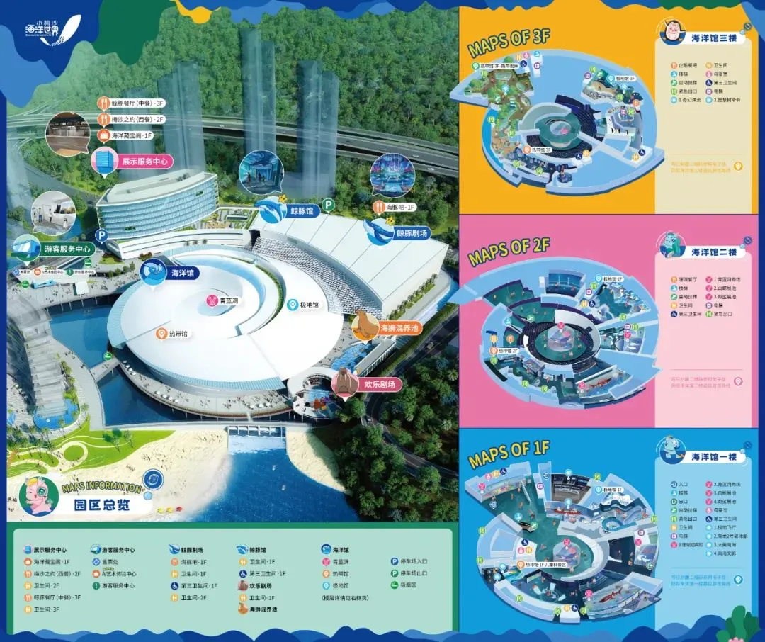 青蓝洞大厅、极地馆、热带馆、鲸豚馆