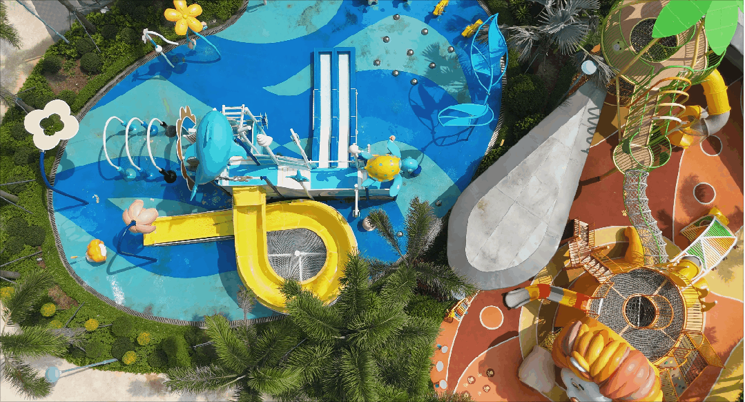 水浅且带有滑滑梯玩具,孩子们可尽情玩水