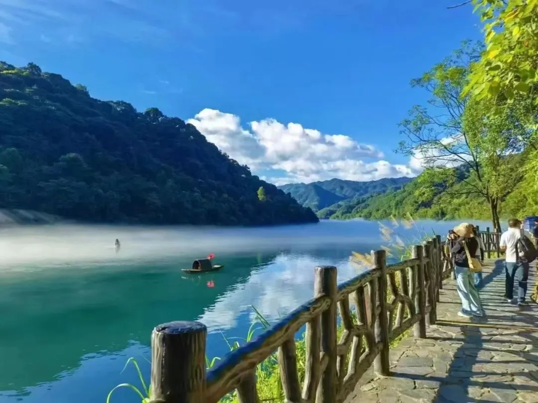 08:30左右集合,坐景区中转车上东江湖大坝景区,参观龙景峡谷,还可以在东江湖边上品尝各类小吃,东江湖鱼、三文鱼、当地水果等,
