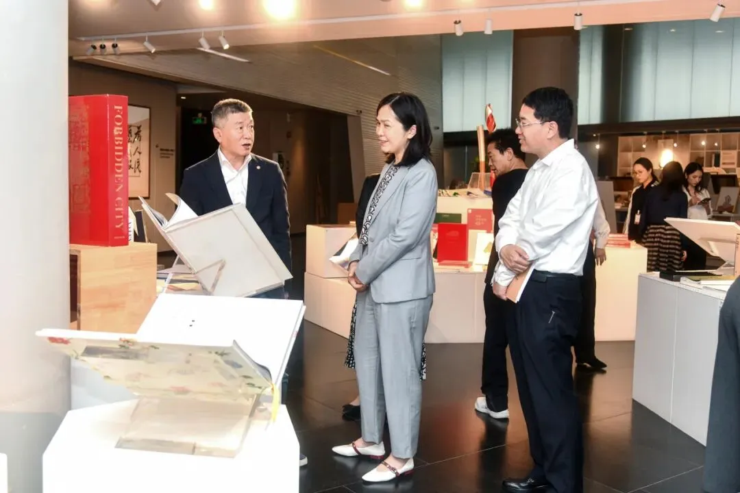 在万捷董事长的介绍下,蔡颖书记一行首先参观了艺术品印刷各系列精品。从入选国礼名录的《西夏文物》,到为国际品牌定制打造的“苹果大书”,再到斩获香港印制大奖的《喜马拉雅——山水人文的影像探寻》,一件件展品生动诠释了雅昌“将每一本书都做成艺术品”的匠心追求。