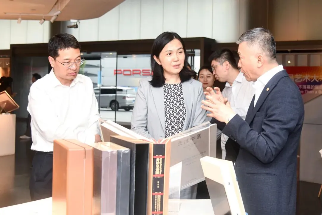 谈及《玉成中国》时,万捷董事长介绍:“文物玉器的细微纹理、原生质感与真实色彩,即便肉眼近距离观察也未必能尽数捕捉,但雅昌通过顶尖印制技术,将这些细节在纸上精准还原、极致呈现。”蔡颖书记对此表现出浓厚兴趣,详细询问雅昌独有的色彩管理与印制工艺。万捷董事长回答道:“雅昌的印制理念,是不仅要忠于原作,更要超越原作。不同光线环境会影响艺术品的视觉呈现,而我们通过艺术与技术的深度融合,让作品在出版物中呈现出最本真、最理想的状态。”