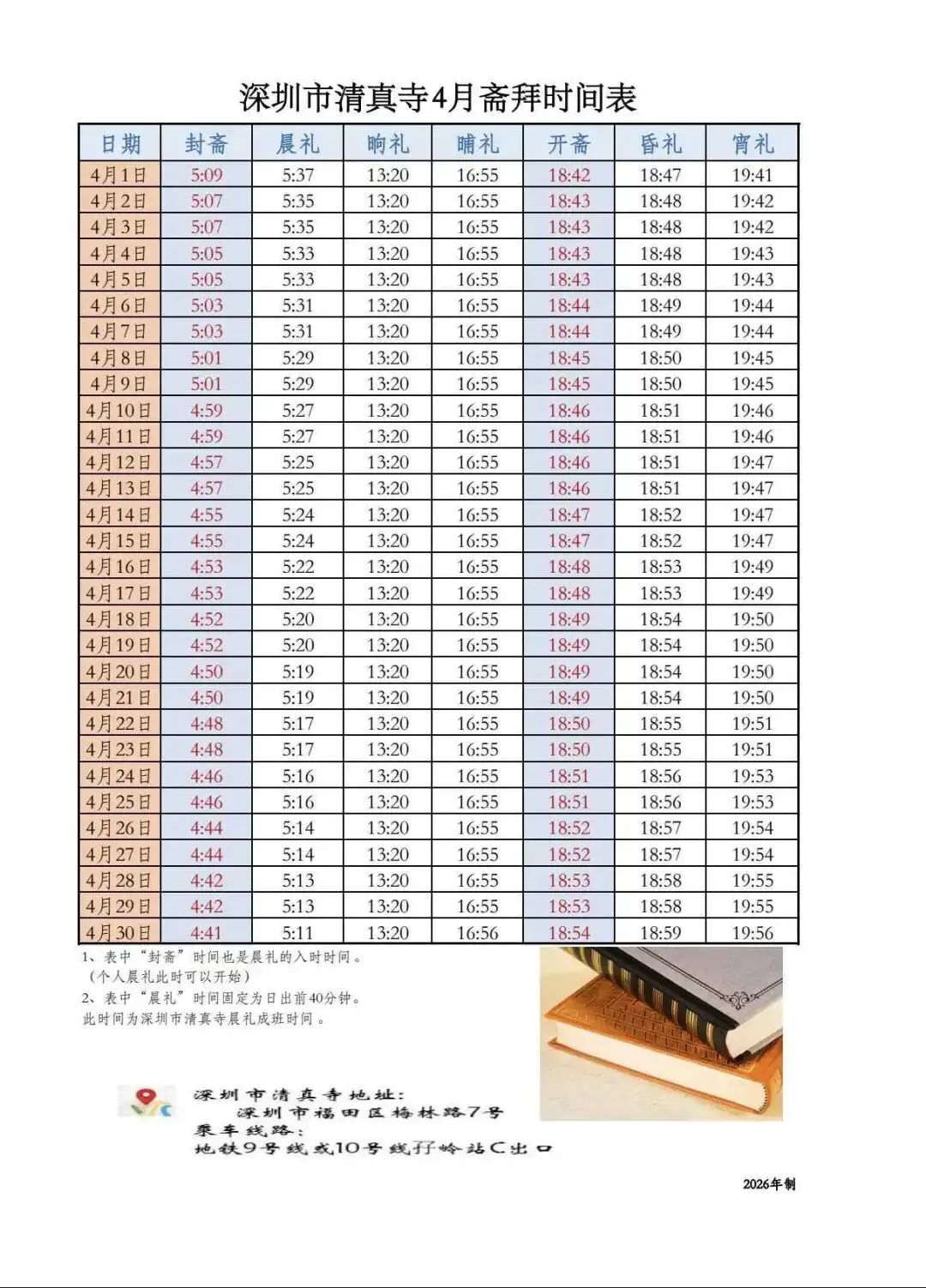 1、晌午的礼拜时间统一由原来的13:30调整为13:20.