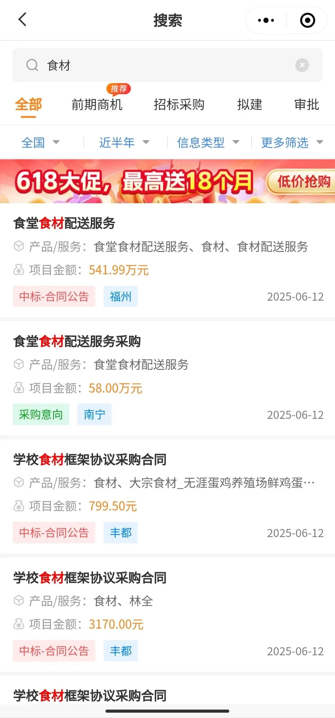 更多食堂食材招标项目详情