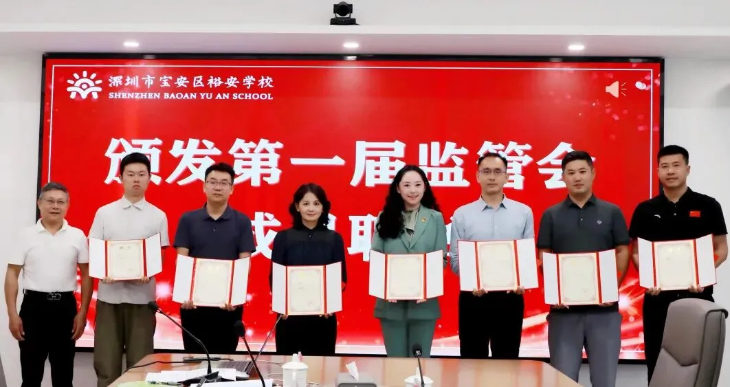 深圳市宝教教育基金会会长陈小光、秘书长李碧丽,爱心捐赠方代表深圳市鹏城花季教育开发有限公司黄宏兵先生、深圳市龙泰翔实业有限公司洪兴佳先生、深圳市菜田供应链有限公司何淼棋女士,裕安学校党支部书记、校长白姗及学校领导班子、中层干部、专项基金监管会成员、师生代表齐聚一堂,共话教育初心,共襄育人盛举。