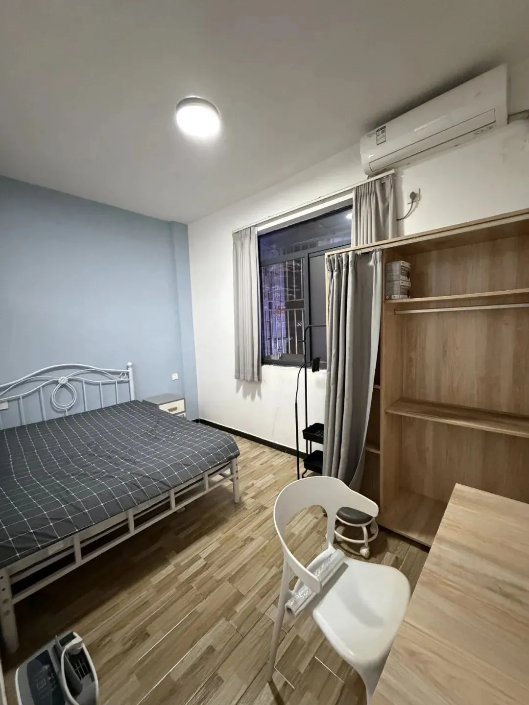 1.家电设施:床,桌子,洗衣机,冰箱,柜子,空调,独立浴室等...家具几乎全新,拎包可以直接入住。