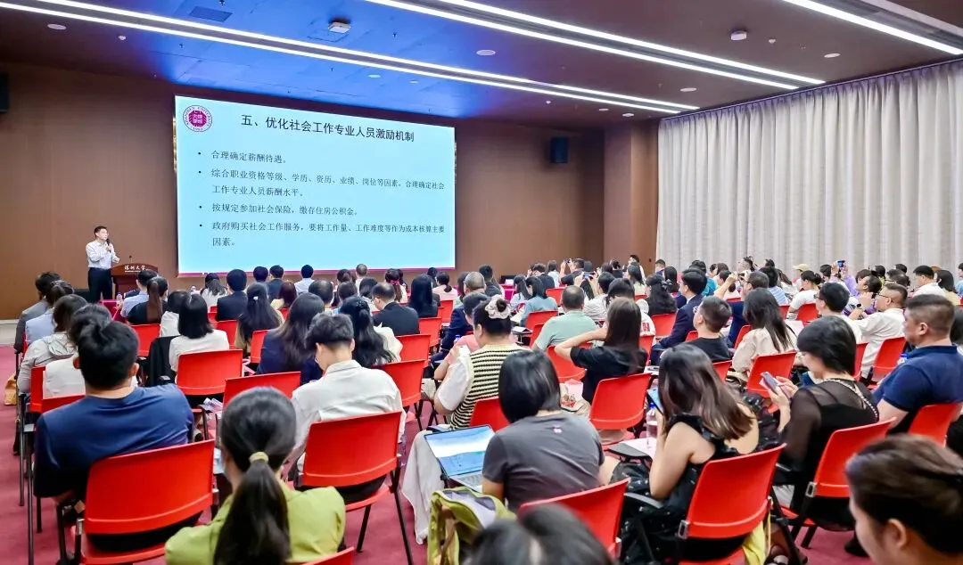 深圳大学政府管理学院徐道稳教授讲解了《意见》的出台背景和重要意义,提出通过建立一支又红又专、德才兼备的社会工作专业人员队伍,推动形成层次清晰、相互衔接、体系完整的社会工作者职业资格制度,优化社会工作专业人员激励机制等措施,推动社会工作向深度职业化专业化迈进,为社会工作专业人员队伍高质量建设注入效能。