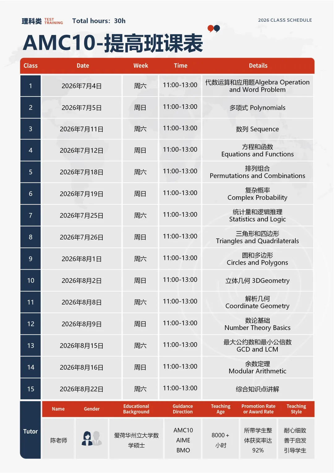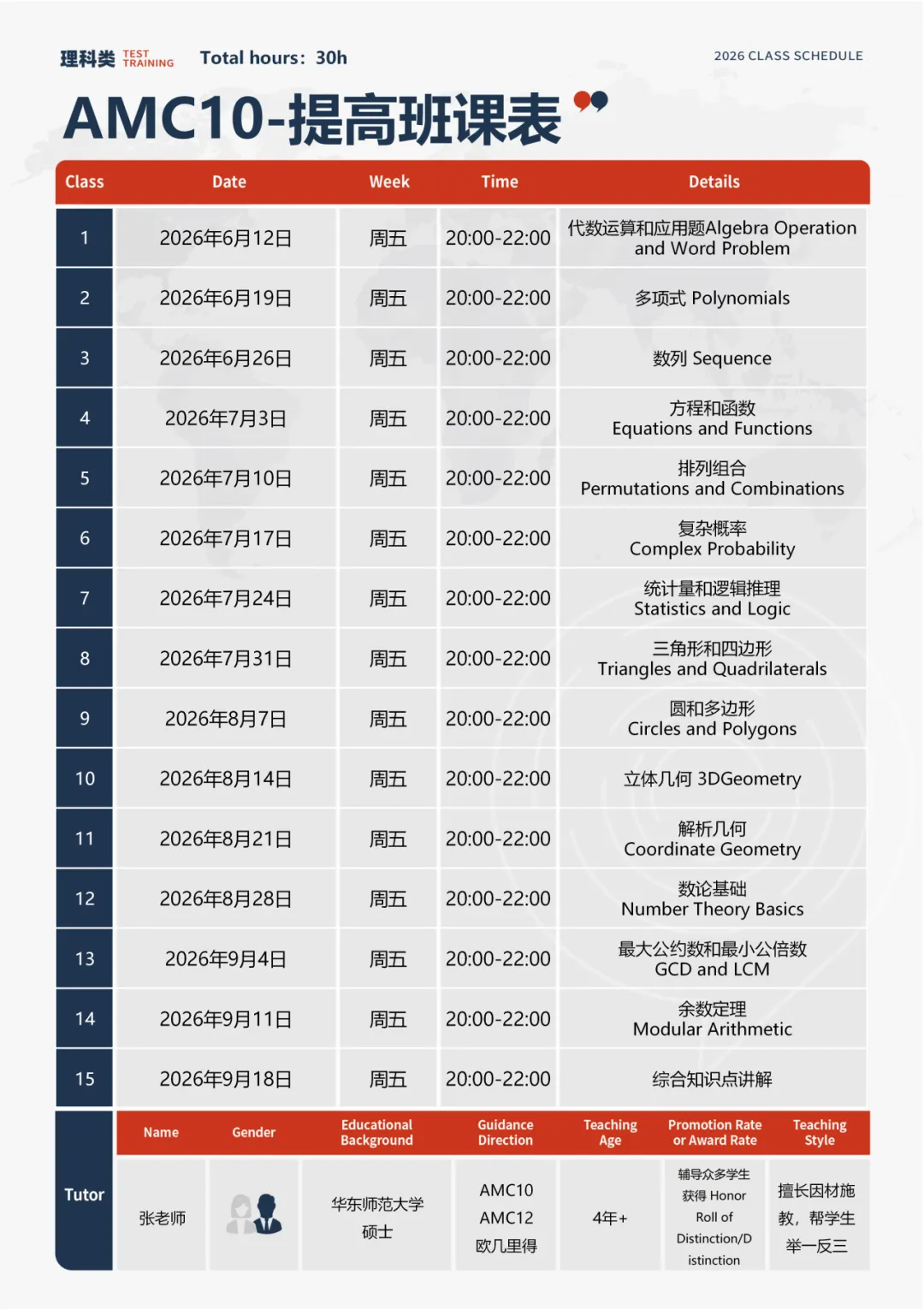 全程班:适合低年级或基础较差的学生参加完辅导可以参加当赛季AMC。