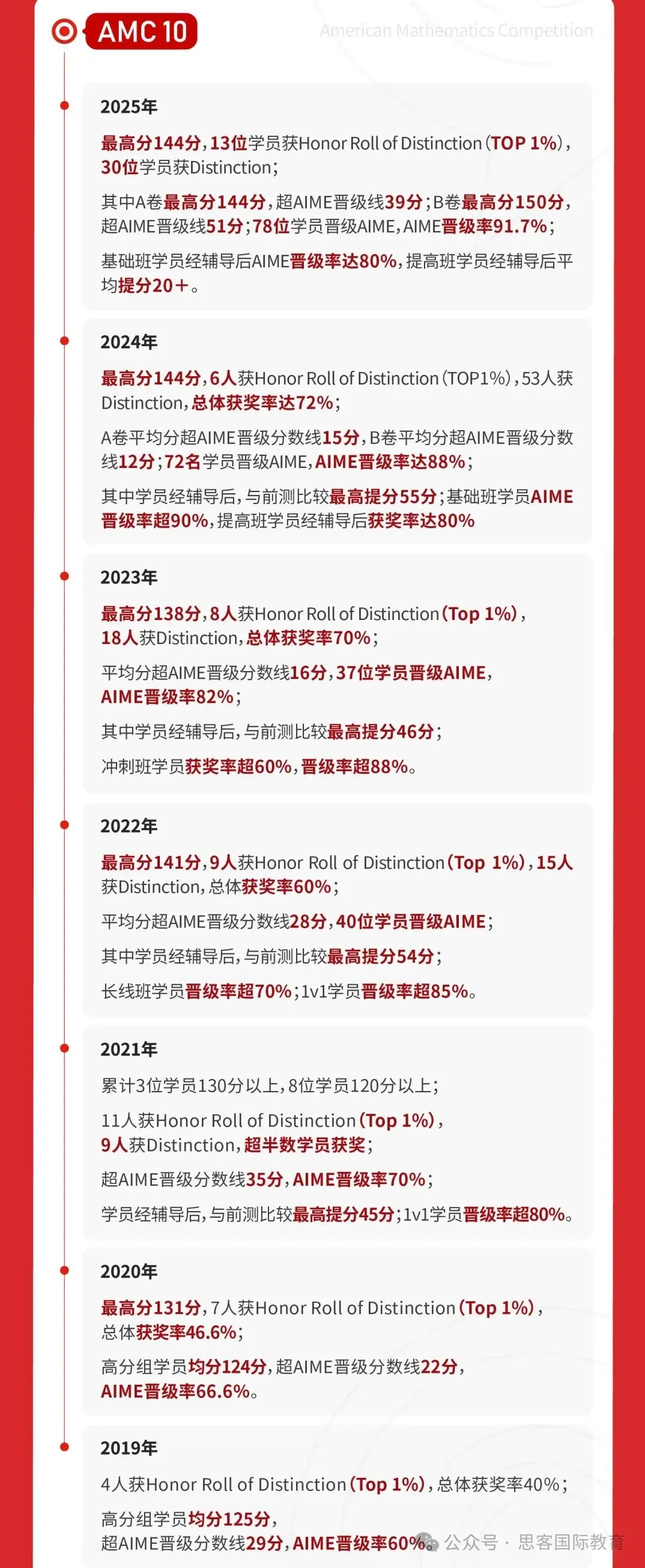 ⬇️图为思客 2019-2025年 AMC10辅导战绩