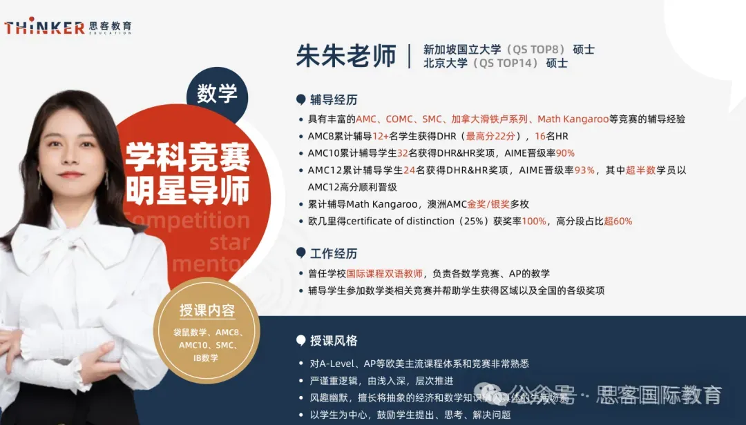 名师授课:清北、海外名校背景,多年 AMC/AIME 教学经验,深谙命题规律