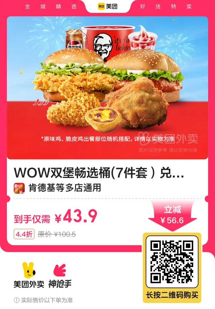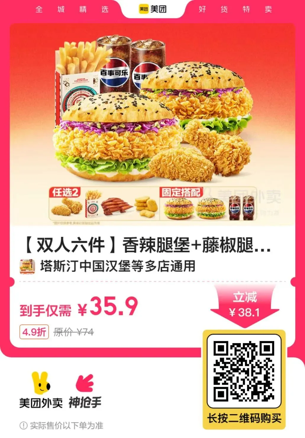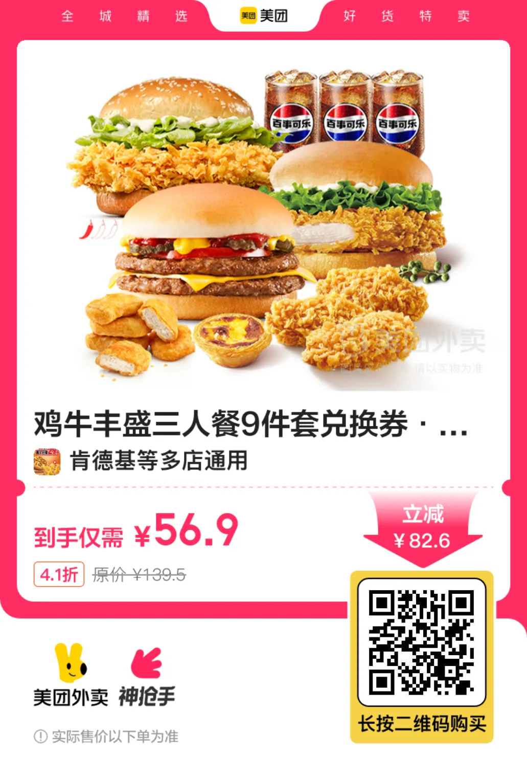 🧧美团外卖5折红包、必胜客2人49.9、麦当劳2人47.9、麦记牛奶2碗29.9