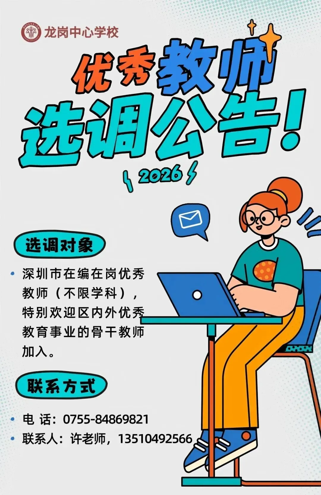 【声明】本公告来源于“深圳市龙岗区龙岗中心学校官微”,由“选调生招聘网”公众号整理编辑,仅用于学习交流目的,若涉及侵权和错误信息,请扫描上方二维码联系予以更改或删除。