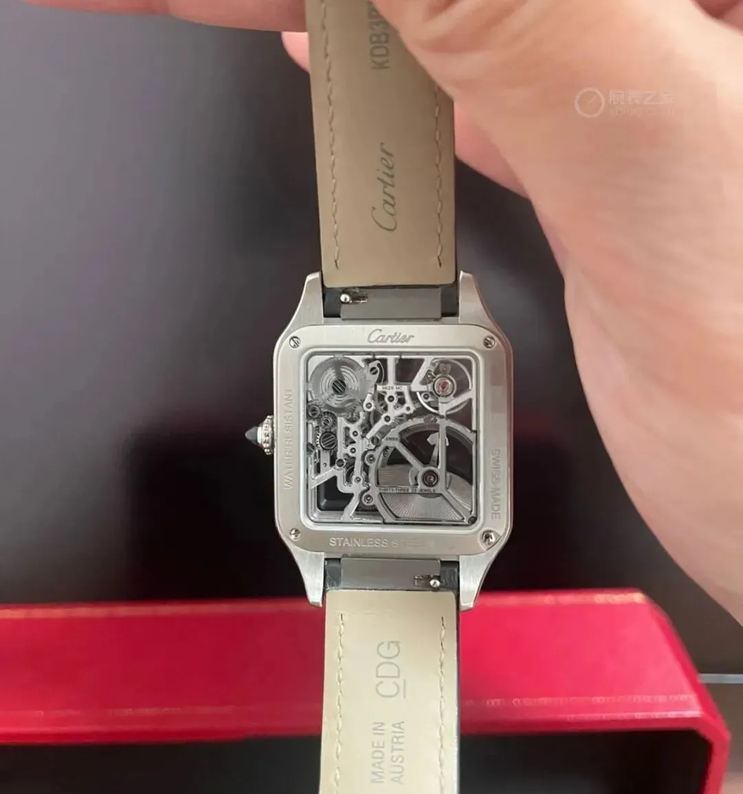 为什么选择钢款:黄金款有现货,溢价也不算高(大概是镂空款用金量偏少的缘故)。但从个人审美出发,表壳与机芯同色更有工业质感;整表仅三种配色(银壳、蓝针、红轴),克制又耐看。如果有铂金款我一定会选铂金,但不要表盘那几道黑 / 蓝漆面装饰,实在欣赏不来。