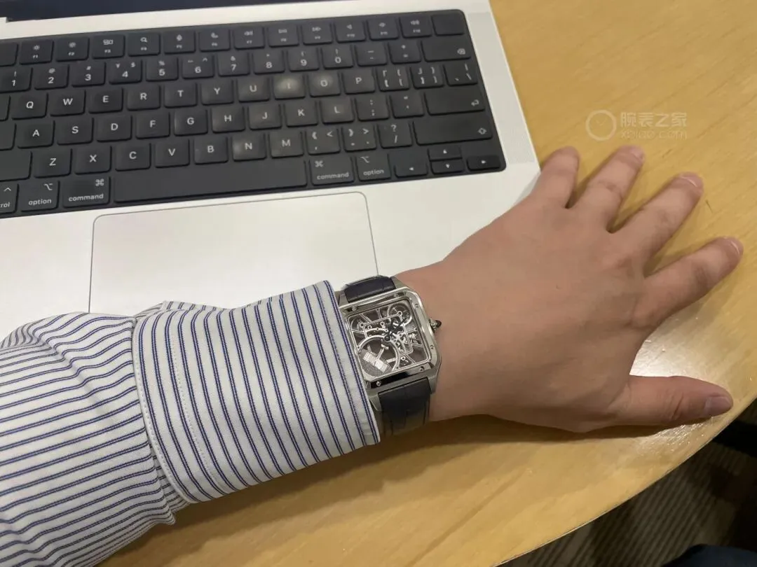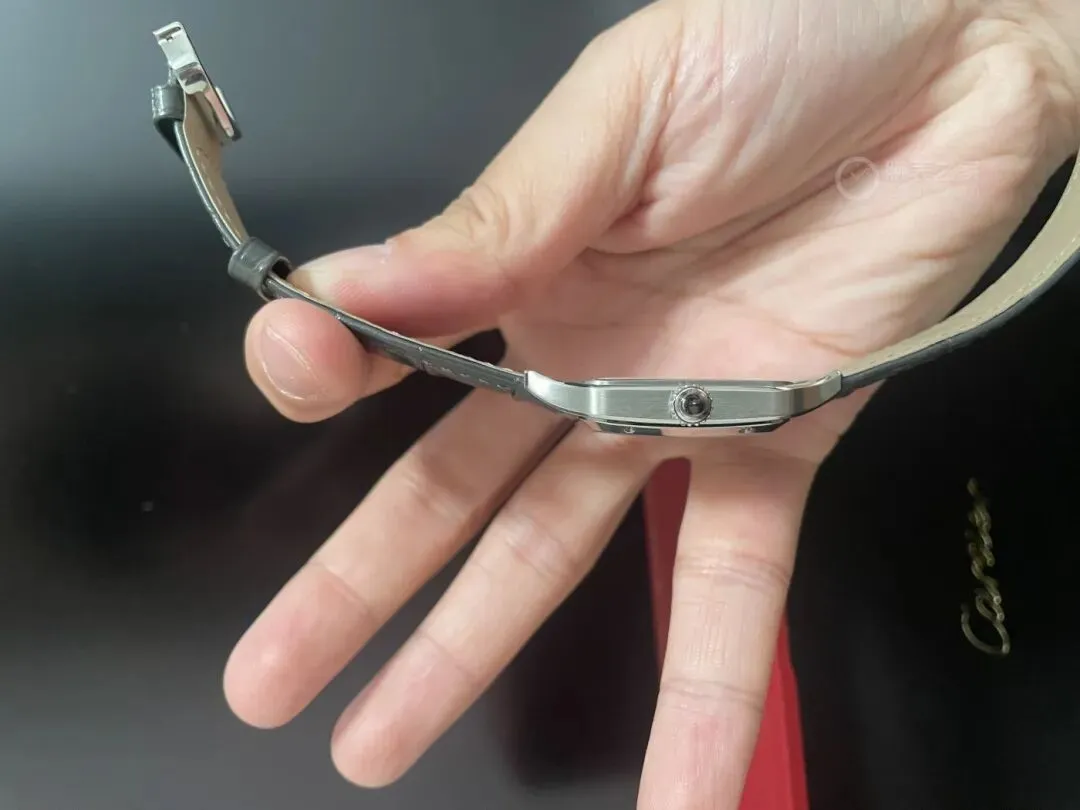 尺寸:山度士杜蒙系列有三种经典尺寸;定义:表耳间距 38 毫米的为小号;表耳间距 43.5 毫米的为大号;表耳间距 46.6 毫米的为特大号。从如今的趋势来看,腕表整体尺寸在逐渐小型化,像我这种手腕较细的人,大号也能驾驭。