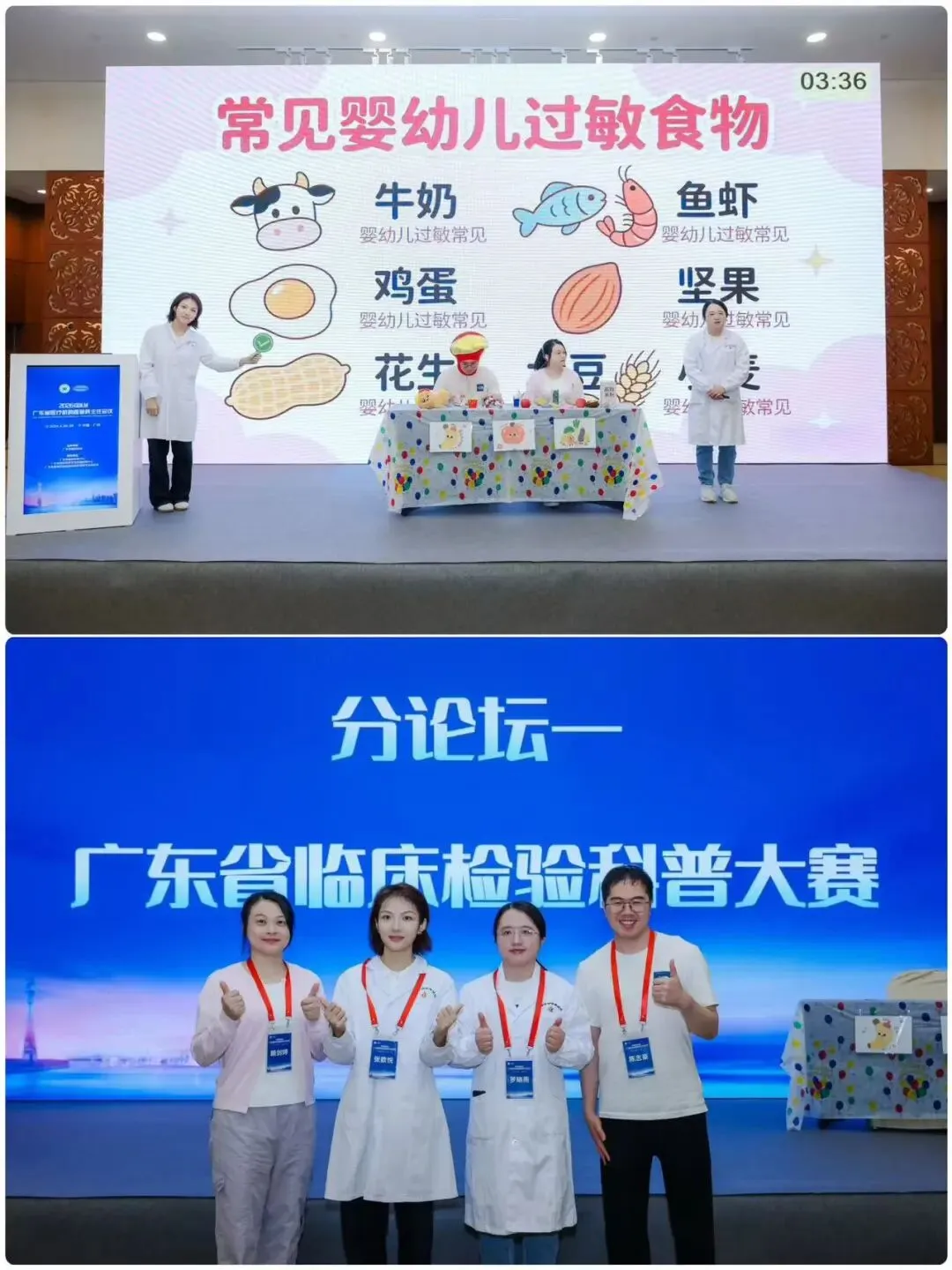 决赛当天需以现场展演的形式进行比赛。深圳市妇幼保健院检验科团队紧扣婴儿辅食过敏的科普主题,精心编排情景科普剧,将专业检验知识融入生动表演,最终凭借出色表现斩获大赛卓越科普奖二等奖。