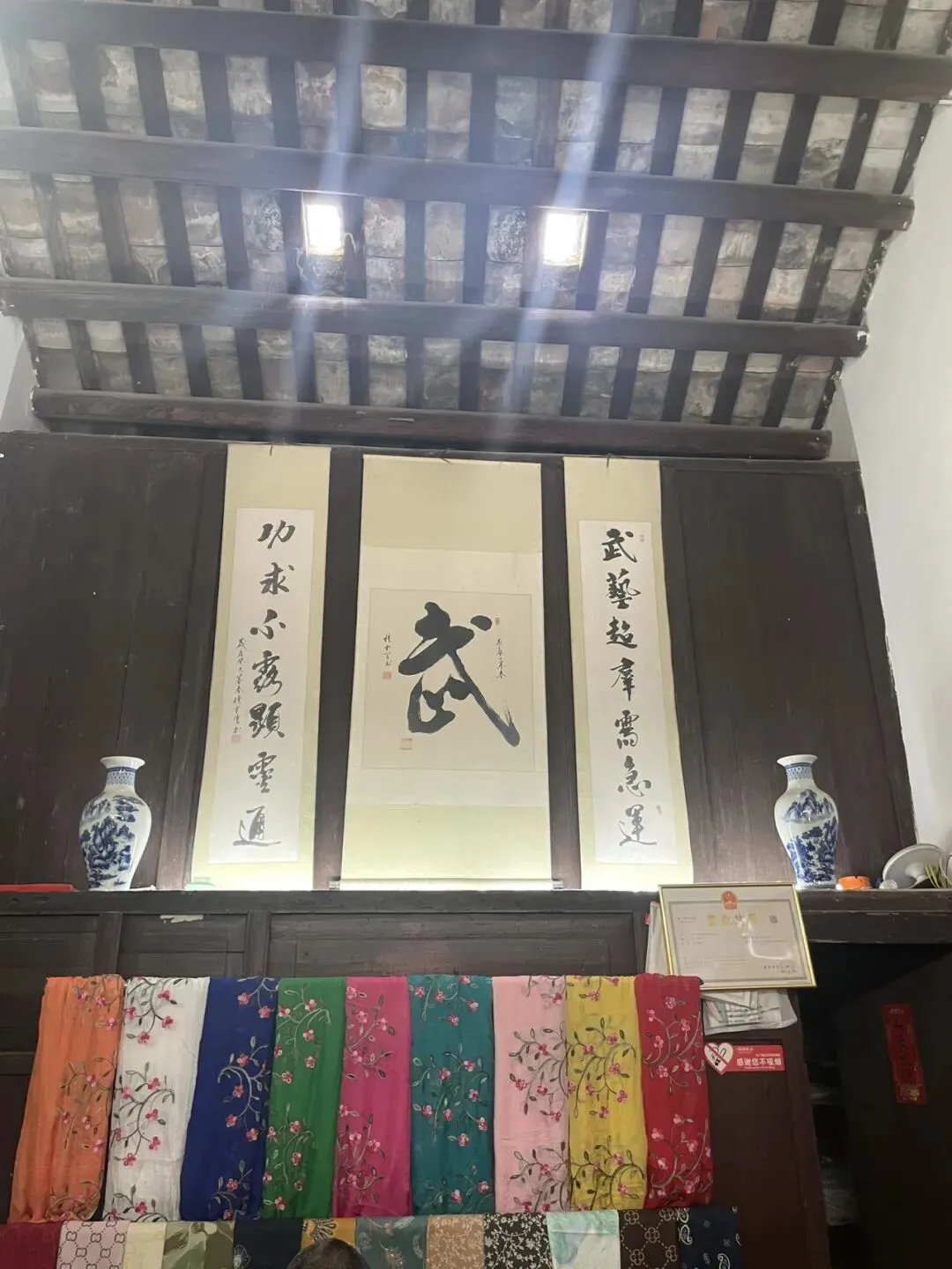 走进将军第,门楣上“振威将军第”的匾额依旧醒目,两侧楹联“秀一鹏山开泰运,重班凤阙迓鸿庥”,道尽了当年将门的荣光。