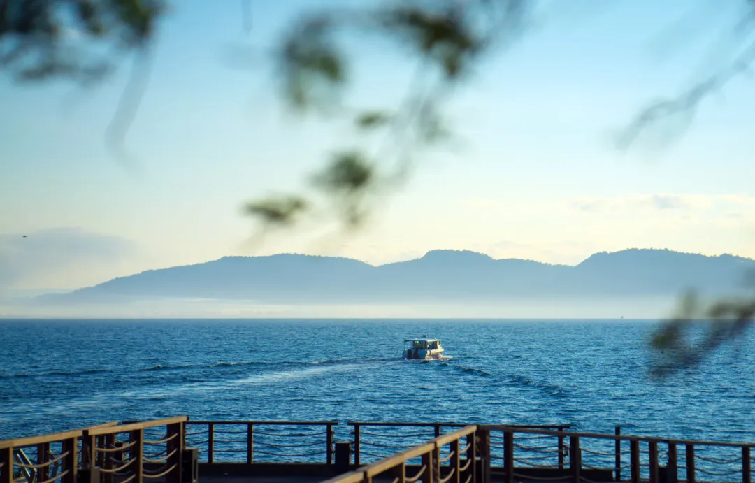 抵达六善的私人码头休息室,再另行搭乘十分左右的快艇上岛。快艇很稳,船上备了冰水、毛巾,工作人员会简单介绍一下岛上情况。