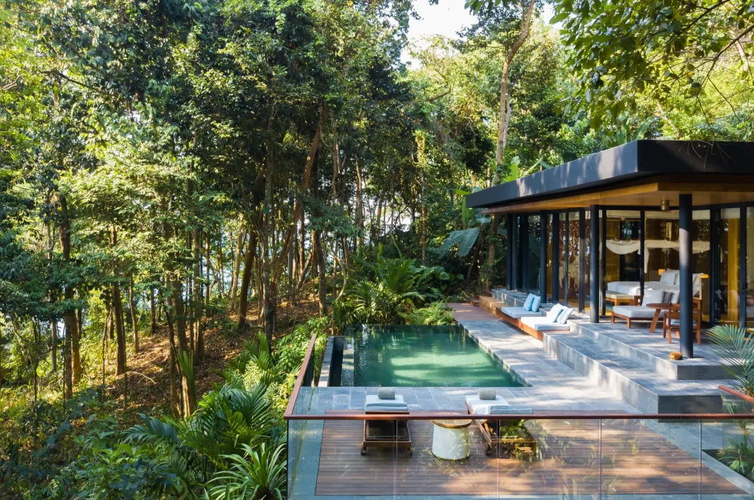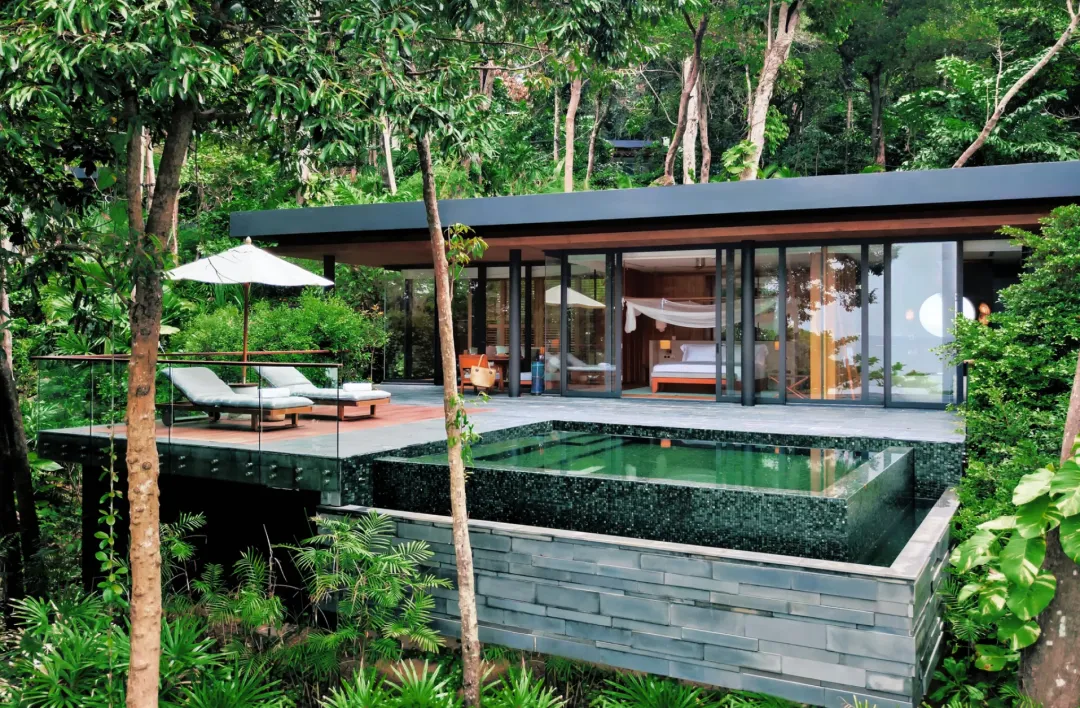 泳池别墅坐落在迷人的热带自然环境中,设施完善,居住舒适,环境隐蔽。别墅提供套内浴室和宽敞的起居空间,起居空间一直延伸到泳池露台,此外全落地玻璃窗充分利用了自然光线,让整个空间通透敞亮。