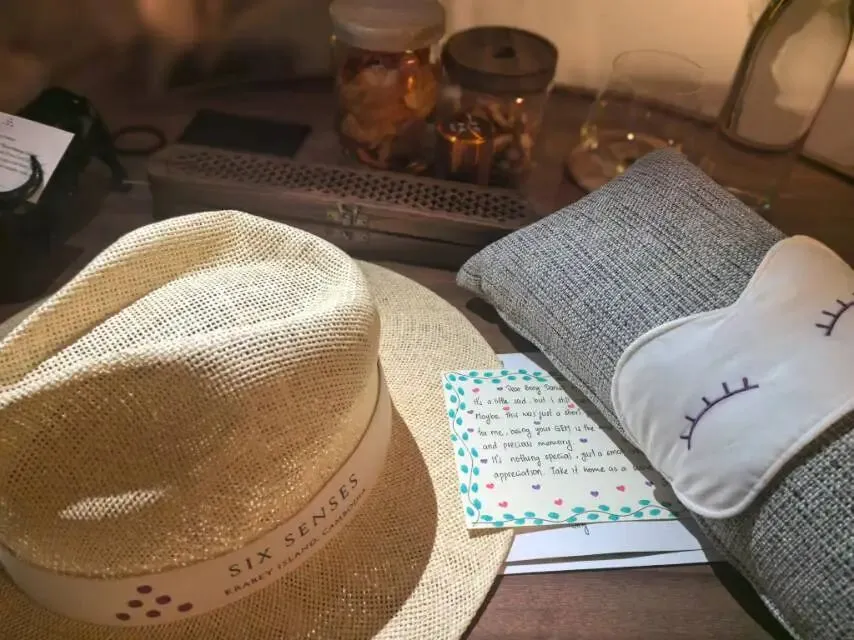 岛上设有合理的安全监控区域,也有员工24小时巡逻。员工对住客们的边界感也拿捏得很好。即便你是个典型的 I 人,克拉贝岛六善也非常适合你。举个例子,你房间里的衣柜,有这样一条特别的“沉默”小围巾,当你戴着它,岛上的员工们见到你,除了友善的微笑和服务之外,不会再跟你搭话。