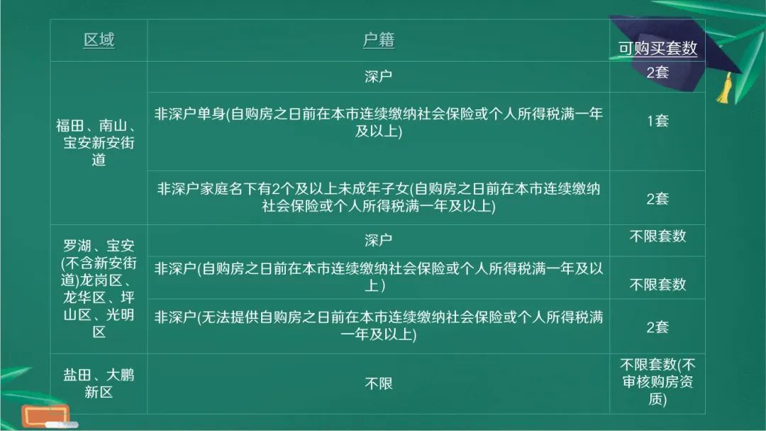 福田、南山、宝安新安街道:深户买2套,非深户单身买1套(社保只要求1年),非深户多孩家庭能买2套——这是核心区的“傲娇式放松”。