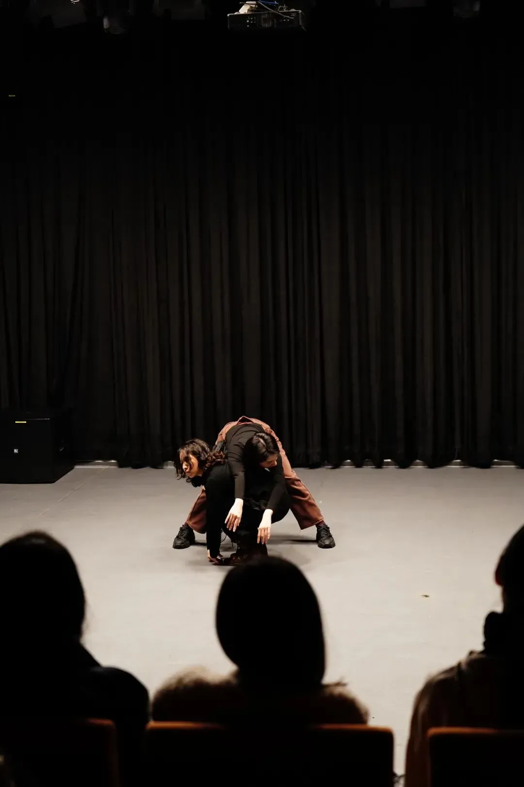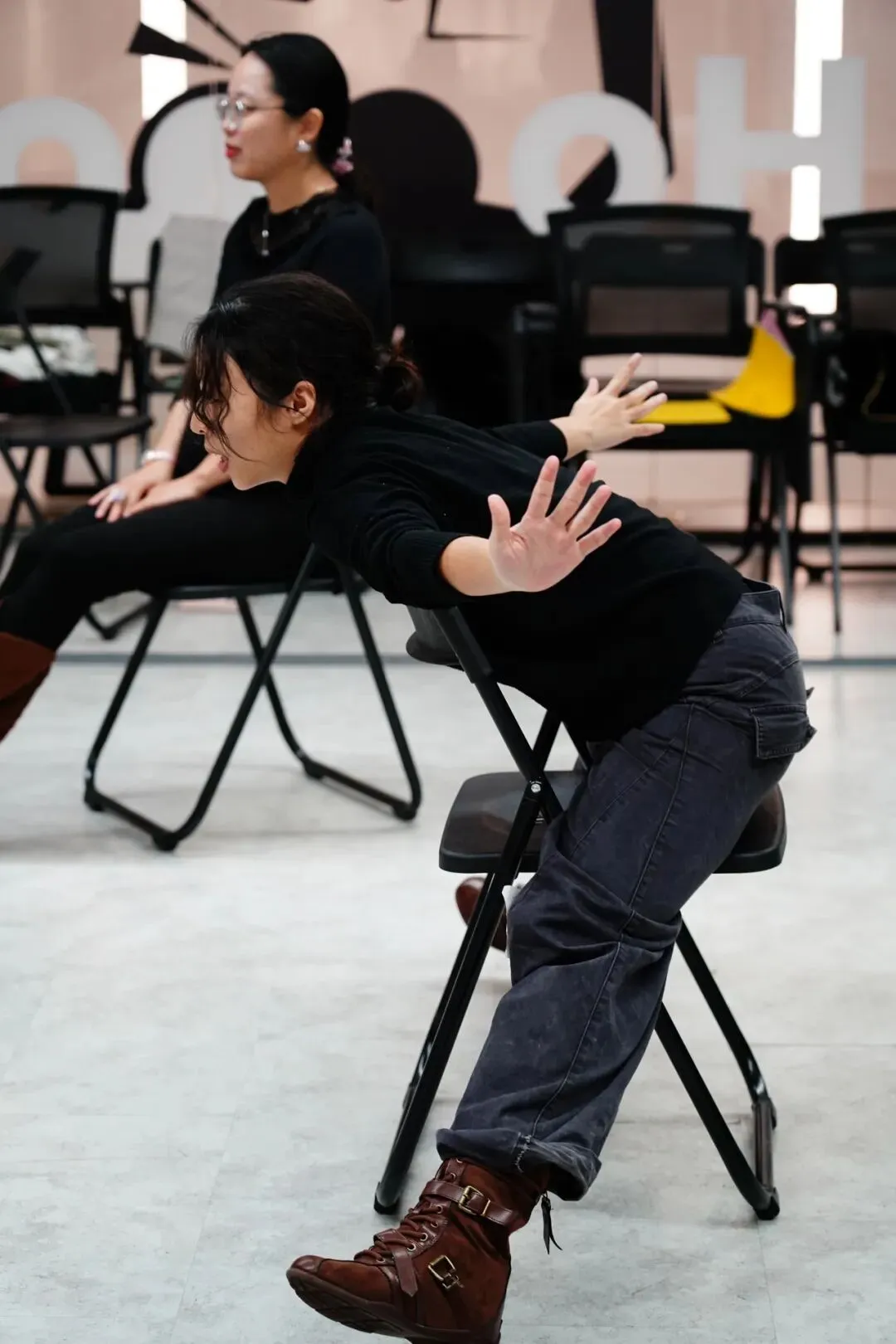 本篇推送,我们一起看看在1月31日-2月1日的深圳场,大家是如何训练、探索与创作的。这一次,是从导师到参与者全员女性,自然而然,我们最终的展演讲述了一些女性的故事。这其中部分内容也在继续深化与创作中,我们也期待未来这些作品以更完善的状态和观众见面。适逢戏剧营的4月场次正在招募中,欢迎感兴趣的伙伴一同了解我们工作坊所做的工作,以及看见往期大家的收获。表演一直是我的一个梦,我曾经短暂的入梦,之后醒了。没想到还能有机会再站上舞台并认识这么多优秀的伙伴。然后还要夸一夸大家的创作力和生命力,每一位参与者演员,小唐老师,水草,期期的投入,对场地的选择都让我们对这一次演出更重视了一分!大家都太有才华了,在这两天的旅程里其实有给到我很多灵感: 女性应该是什么样子的,或者说中年女性应该是什么样子的,你们带给我好多答案,让我不再害怕长大!再谈谈今晚的表演,我觉得大家的呈现在舞台上,有了观众都比在排练厅进步超级大,可以说是我愿意来买票看的表演!!最后谈谈我自己的故事吧,之前知道即兴戏剧和独角戏难,没想到这么难! 虽然很多细节没有跟想象中完全一样,但是有传达到我想要传达的东西,大家的出演让我想要传达的东西更有力量,真的谢谢!小唐你好,谢谢你这两天的指导!我框框就是感受就是学!yes and真的是我最最喜欢的教学方式了!表演游戏很好玩,身体开发很有趣,即兴创作也很有意思,我要把这些游戏全都记录下来回头和我朋友一起玩hiahiahiahiahia最后说小林你好,这两天你过的非常丰富和充实,你挖掘了你身体和大脑的潜能,你认识了很多厉害的朋友,你发现原来所谓的三秒落泪其实你也可以做到,你觉察原来你是可以做喜剧的,你有连你自己都不知道的那些纯粹的还有擅长的适合的,所以这条路你可以走!请继续寻找那些快乐的幸福的晴朗的时光吧!緊繃的心終於松下來的當下,我的第一次戲劇體驗工作坊也結束了,我喜歡什麼?在課上大家不止一次地被問到,我在那個瞬間當然也可以輕巧地回答——“一切與玩有關的事物”,這同時也是我參加這次工作坊的原因,理所當然的“玩”是鬆弛的無負擔的,但在面對戲劇時,我似乎又不能如孩童一般玩樂,需要以第一視角沈浸其中,卻也需要提前以第三視角洞察一切。那些微小的細碎的,在我腦中不斷湧出過的思緒與情感,如今需要被誇張化地展現出來,我的第一次嘗試是敲一扇不會開的門,在我以往的感情生涯中,我一直是一位敲門的女人,“嘿,在嗎?”、“嘿,在嗎?”、“為什麼不開門,你不知道我在敲嗎?”、“還是你知道我在敲門,你卻故意不開,你為什麼要這麼做呢?”......它是我直覺性的痛苦體驗,我扮演受害者的角色也自然熟能生巧。我的第二次嘗試是扮演一隻椅子,扮演一隻不被相信、不被需要的椅子,當然我自然也可以是一隻椅子,只要我足夠相信,這便是戲劇好玩的點,我相信我所是,扭曲任何概念,成為任何概念。我的第三次嘗試是深入了我的核心,循序漸進地,我也將“自己”如實供出,從一個女人,到一隻椅子,再到一條河流,雖然沒有提前設計,但卻巧妙地與我的生命軌跡所吻合。從害怕“我被暴露”,到“我”享受“暴露”,最後連“我”都沒有了,一點一點的,抹掉我自己的痕跡,只有存在本身。當然這是在事後回顧才能有如此輕描淡寫的舒暢,我在實際演出前,是焦慮的。我所焦慮的,並不是觀眾會不會喜歡我的表演,而是我自己想不想做這個表演,我是真的想要如是表達嗎?但我不確定,也可能是兩天不到5小時的睡眠與緊密強度的訓練讓我猶疑,我開始覺得不好玩了,沒有什麼好玩的,於是在我表演前的幾個小時,我一直是不興奮的。我不知道轉折點在哪裡,但輪到我上台後,當我站在舞台上,看著眼前的觀眾,我又有了訴說的慾望,于是我将这两天所有的情绪与能量全部涌出,这是我最享受舞台的一次,我被自己感动了。這當然是一件好玩的事,從“無期待”到“開始有期待”再到“不確定自己是否期待”,跟隨著自己一步步的能量,我走到了這裏、那裏、轉一個圈、停住、再繼續走。戲劇真好玩,還想繼續玩,每一步都剛好很好。更有意思的是,與一群現實生活中可能從不會遇見的人相聚於此,我相信當下的緣分,所以對每一次相遇都尤其感恩。大家如此不同,因為不同的理由前來,但在看每一個人的表演時,我又可以拋卻所有的外在標籤,像是在看我一樣,原來,這一個密閉的、關於戲劇空間,便是我們共同的源頭。小唐、水草和期期,作為戲劇的前輩,在他們身上,我看到了無條件的信任,用專業的引導讓每一個人都如其所是,在圈圈裡面玩遊戲,但可以擺任何姿態。他們也是一起玩遊戲的人,把幾顆球同時拋到一個空間,各自散落,“要均勻”,但不均勻也沒關係,嘻嘻。我喜歡“Neutral 中性”這個詞,這也是我冥想時的狀態,從空無到入戲再到空無,這也是我們存在的本質,我更加確定戲劇是讓我們更接近本質的一種形式。我會繼續玩,繼續接觸不同的規則,玩。