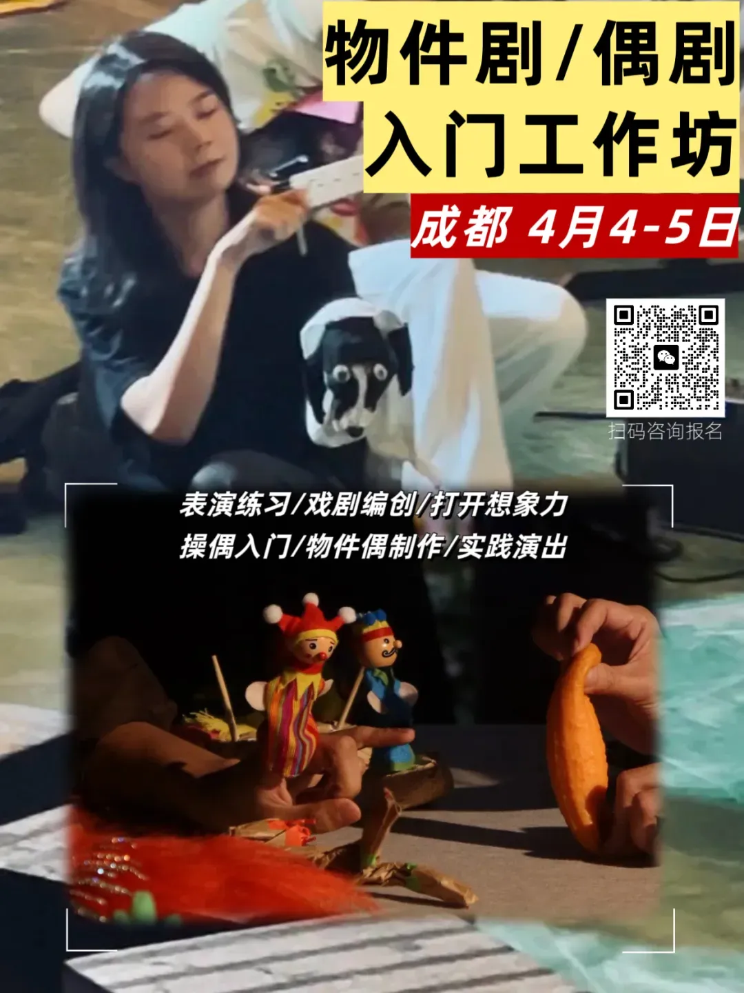 素人戏剧表演与编创营这个项目,我们已经成功完成了3期,其中有2期发生在深圳的野声戏剧公社。近三十位不同年龄段的、来自各行各业的参与者,通过在剧场的两天训练,创造了多姿多彩的作品,完成了惊艳四座的汇报演出。