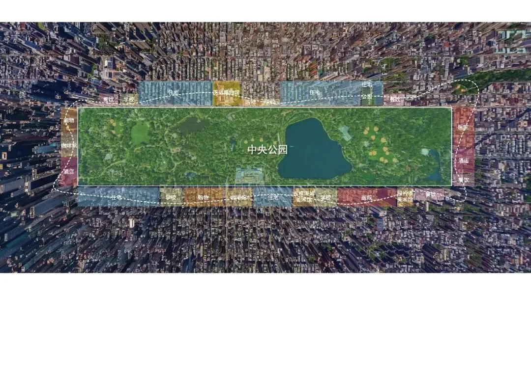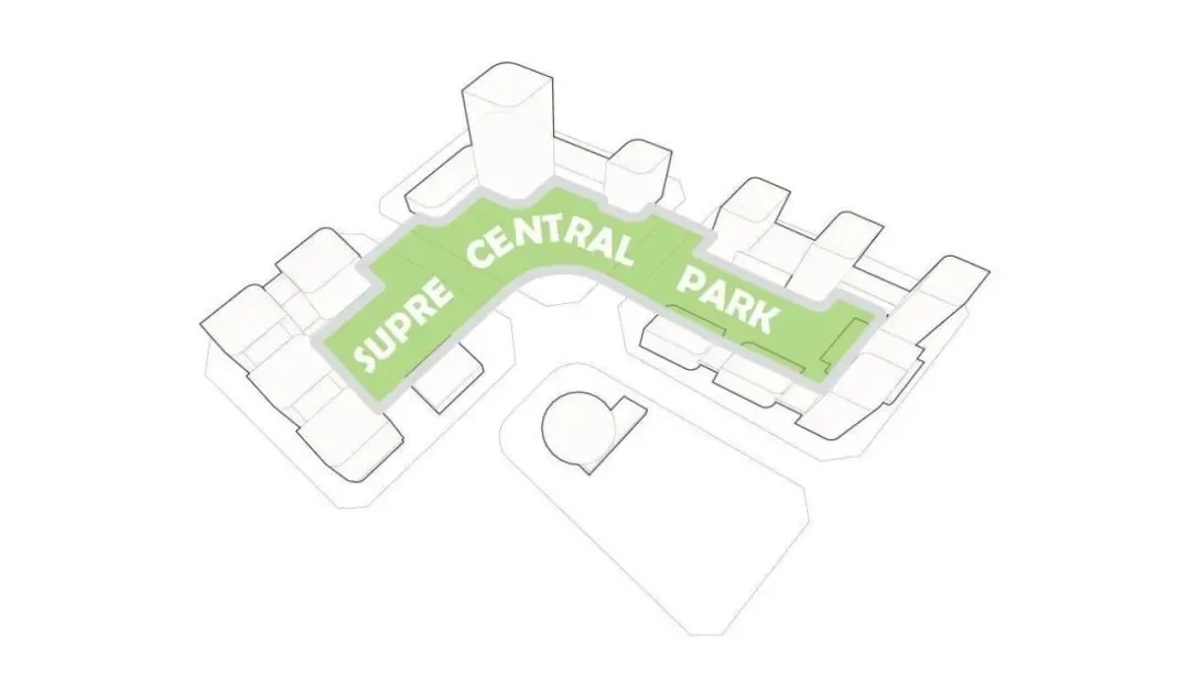 公园作为纽带,其作用体现在多个层面:首先,它为园区提供了充足的绿化面积,改善了环境,营造了一个气候宜人的绿心;其次,公园的开放性与可达性促进了员工之间的非正式交流,增强了团队协作的可能性;最后,沿着公园空间形成社区商业的载体,承载的完善和多样的配套成为吸引高端人才的重要媒介。