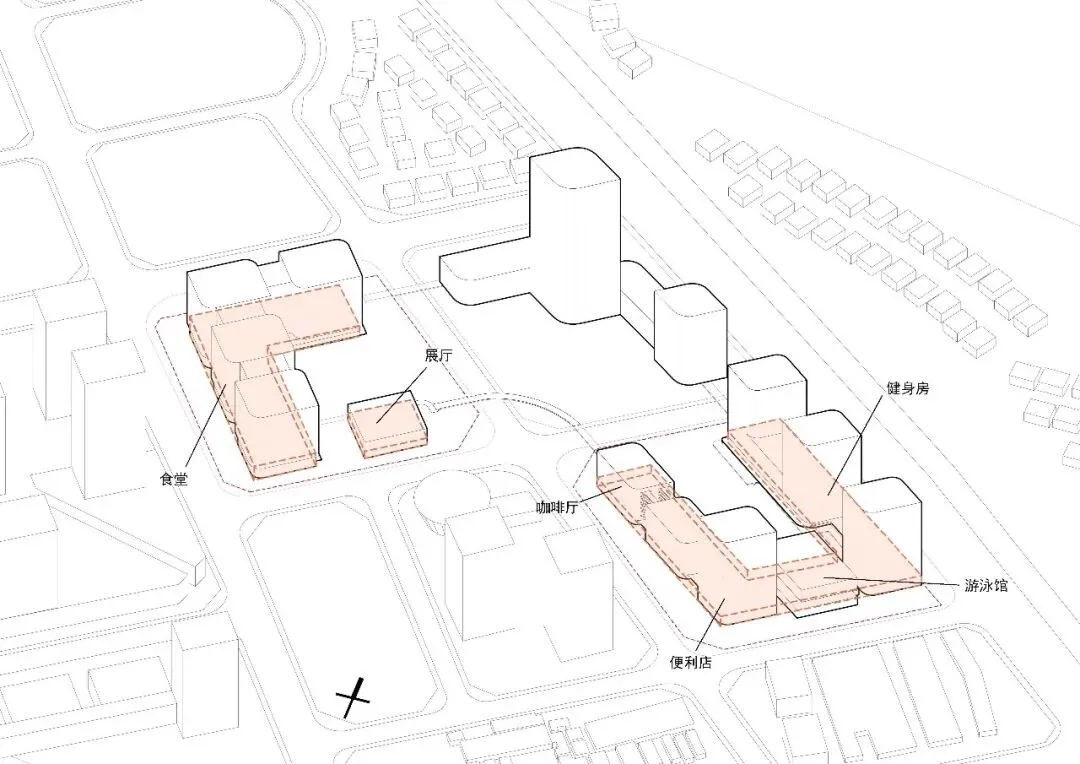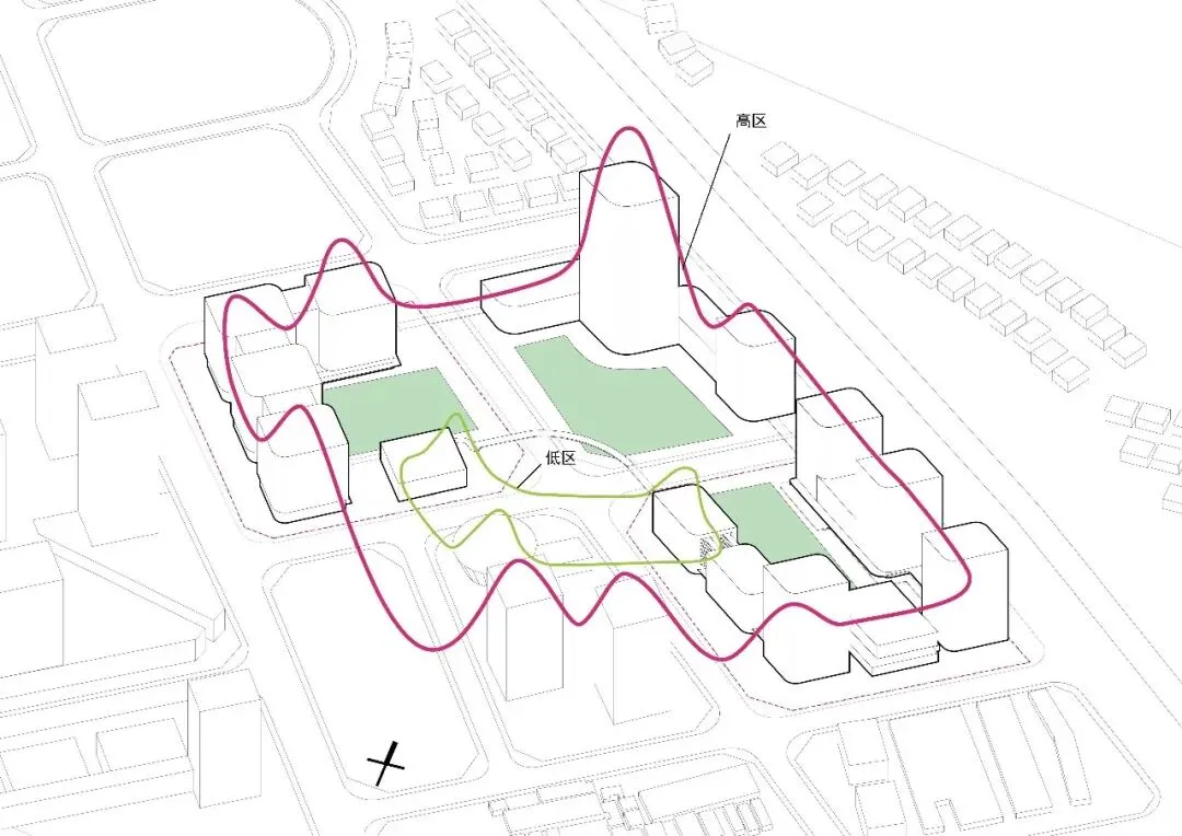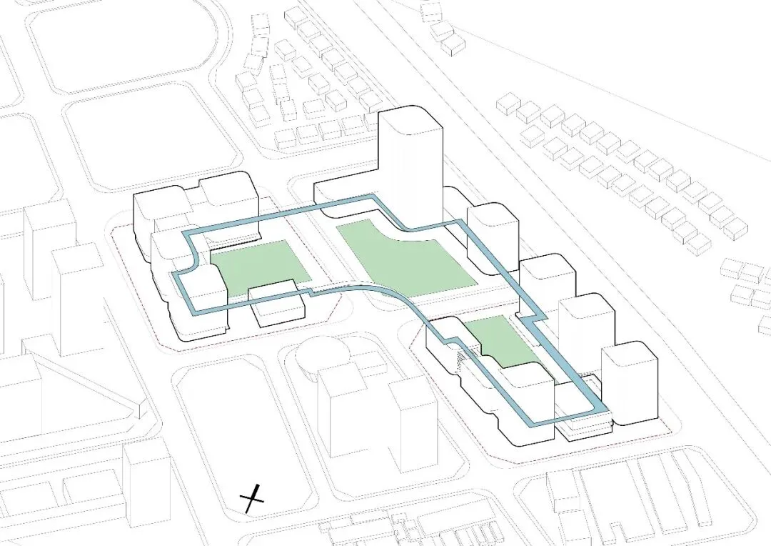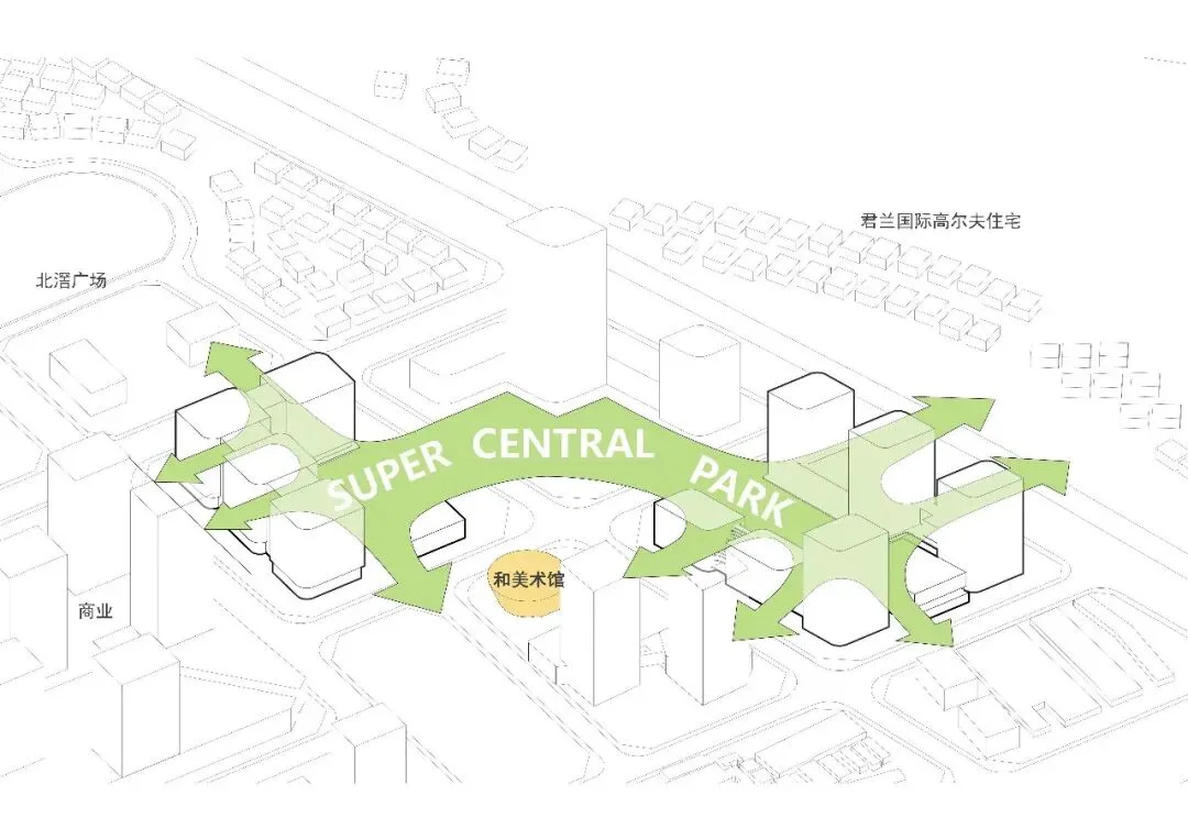 通过空中与地下连廊将三个地块联系,确保动线的便捷性及空间活跃性。